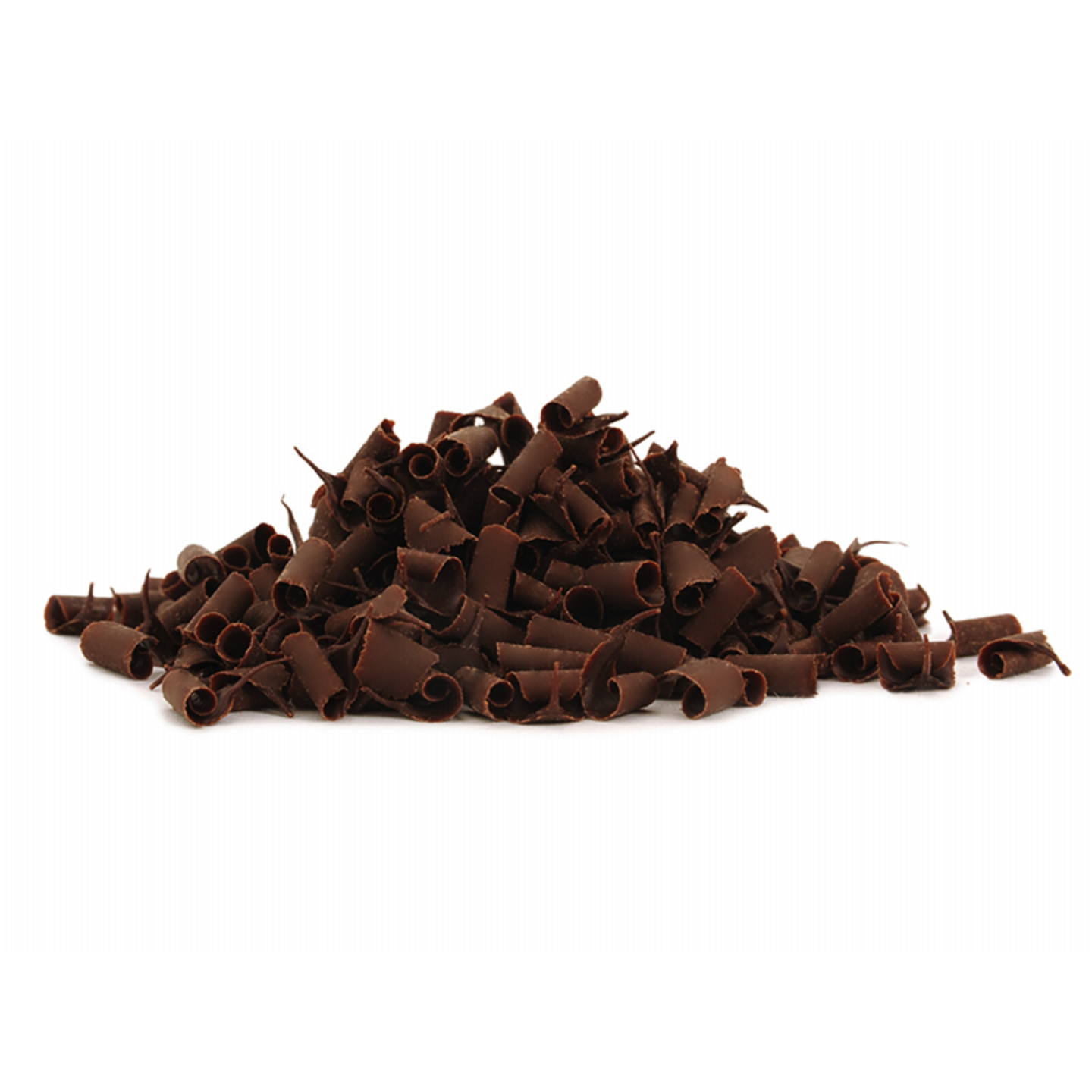 - Dekorační tmavě hnědé mikro hoblinky z belgické hořké čokolády.