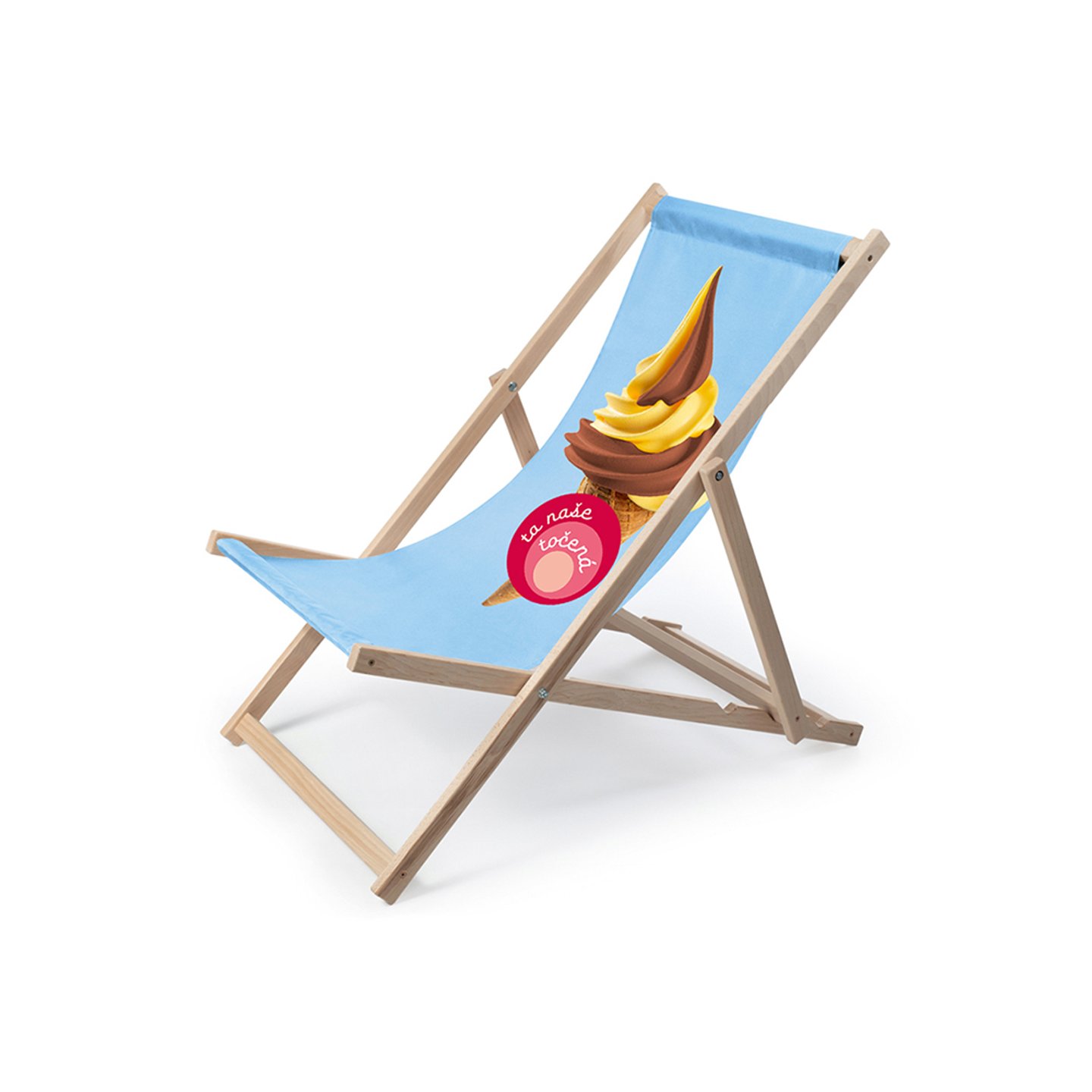 Dejte svému prodejnímu místu tu správnou letní atmosféru! Dřevěné lehátko s modrým potahem a motivem vanilkové a čokoládové zmrzliny z kolekce „ta naše točená“ zaujme na první pohled a podtrhne vaši vizuální identitu. Vytváří prostor, kde si zákazníci chtějí užít zmrzlinu v klidu – a s úsměvem.