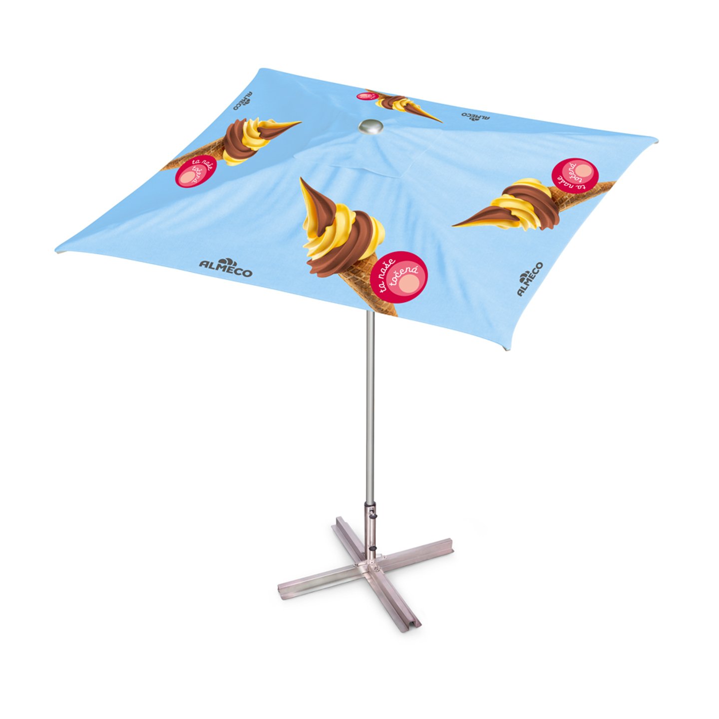 Velký modrý slunečník s motivem vanilka/čoko z kolekce „ta naše točená“ vám pomůže vytvořit příjemné posezení, které je nepřehlédnutelné. Díky robustní hliníkové konstrukci, odolné plachtě a praktickému formátu ho snadno umístíte i nad stoly.