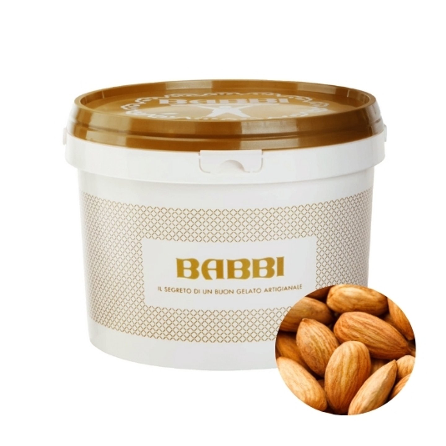 Ochucovací prémiová pasta z pražených mandlí s kousky pro ochucení zmrzliny a dezertů.