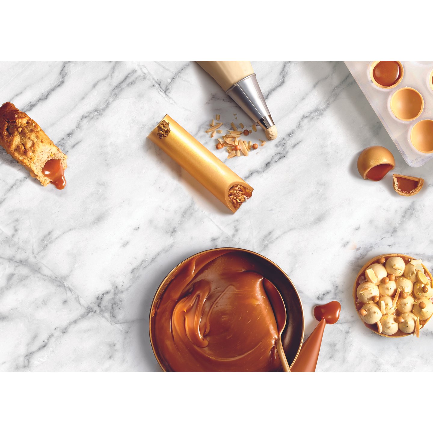 - Hotová vysoce kvalitní zlatavá náplň s chutí máslového karamelu.