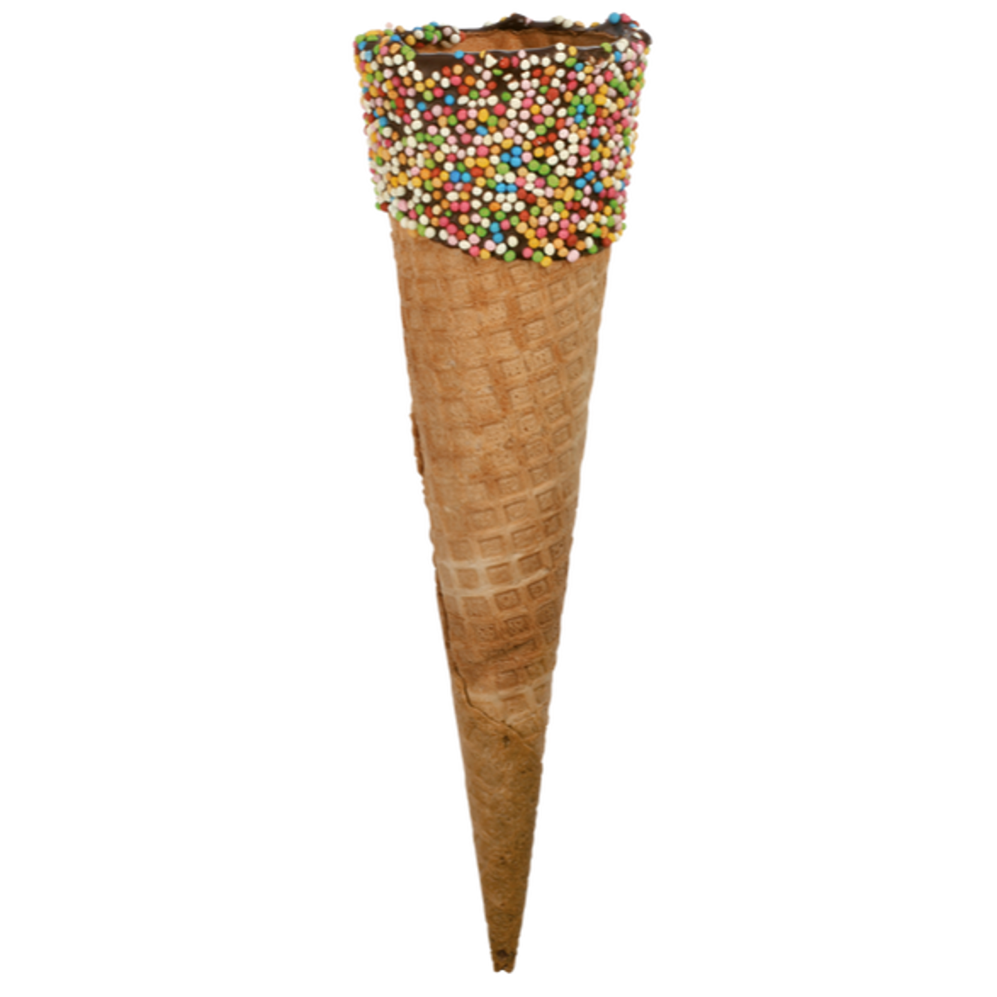 Vystupte z davu s exkluzivním prémiovým kornoutem, který si zákazníci zapamatují! Big Perličkový je extra velký stáčený vaflový kornout, dekorovaný kakaovou polevou a barevnými cukrovými perličkami. Spojuje atraktivní vzhled s perfektní funkčností – pro skutečně výjimečný zmrzlinový zážitek.