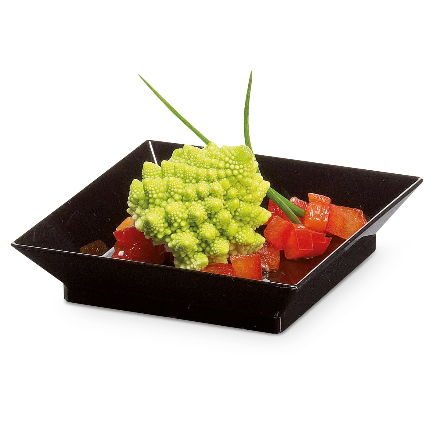 Plastová miska černé barvy vhodná k servírování dezrertů a jiného cateringu.