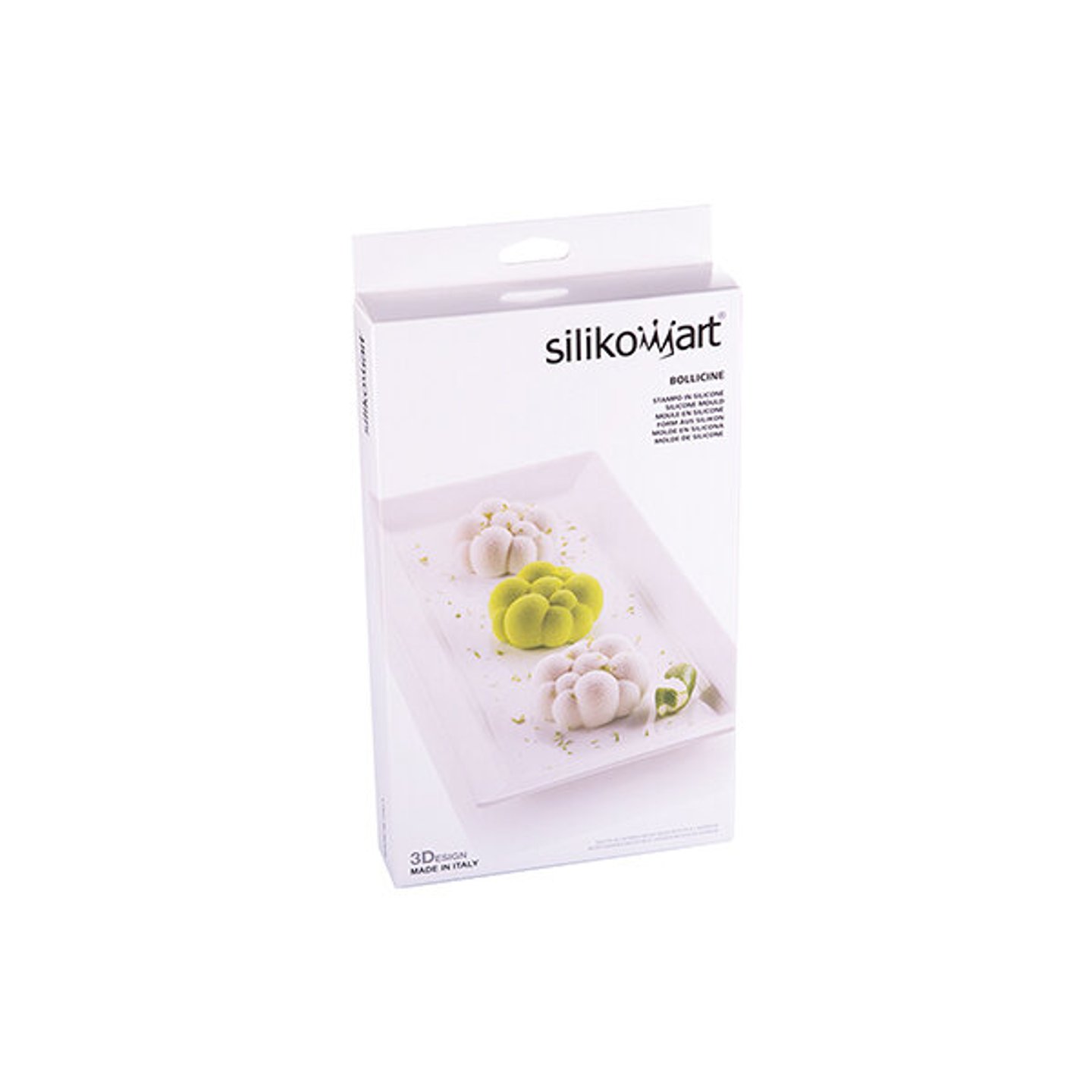 Silikonová forma Silikomart Bollicine z kolekce 3Design přináší originální design inspirovaný strukturou drobných bublinek. Povrch dezertu tvoří množství jemných kulatých tvarů, které vytvářejí moderní a hravý vzhled.