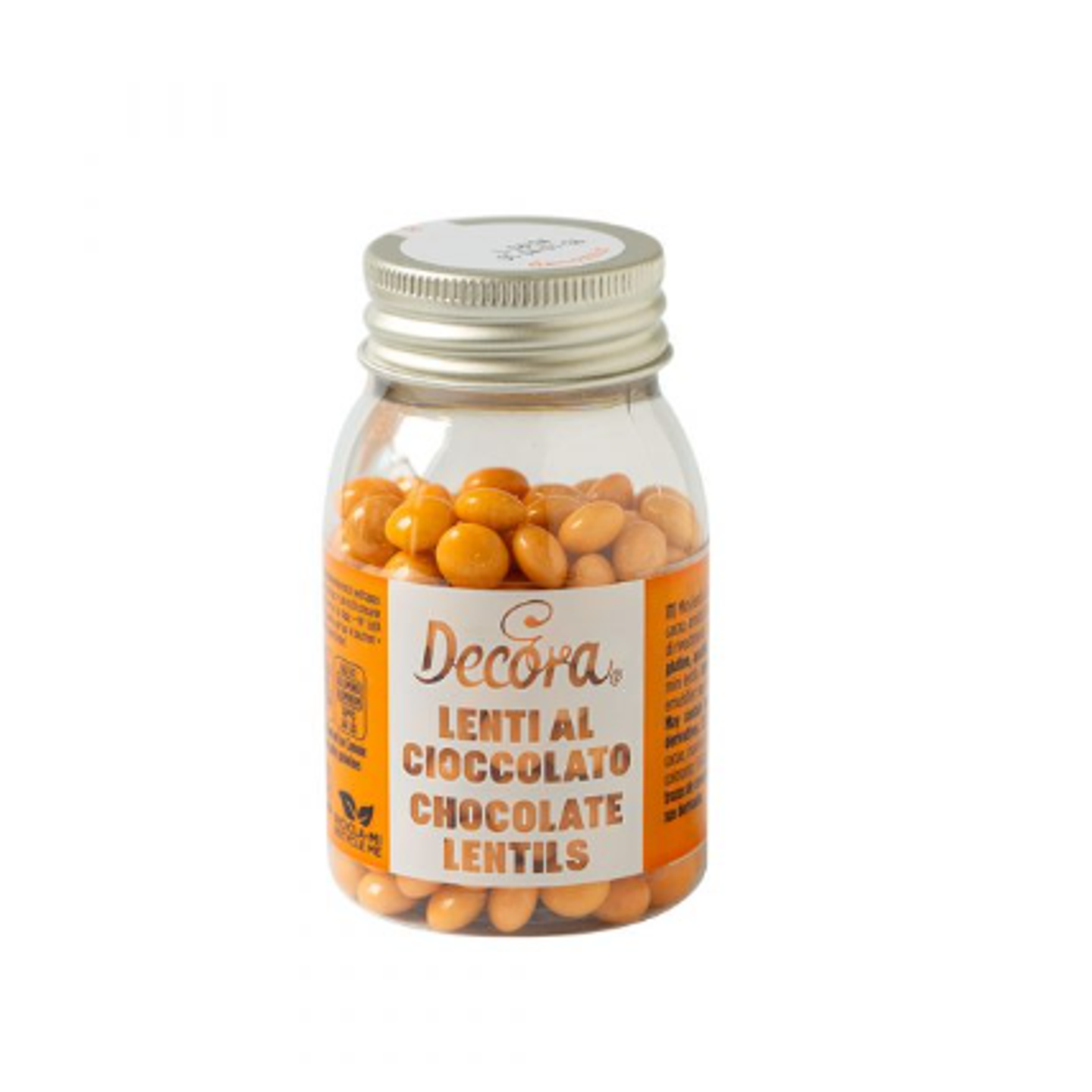 DECO Dekorace lentilky mléčná čokoláda SVĚTLE ORANŽOVÉ 80g