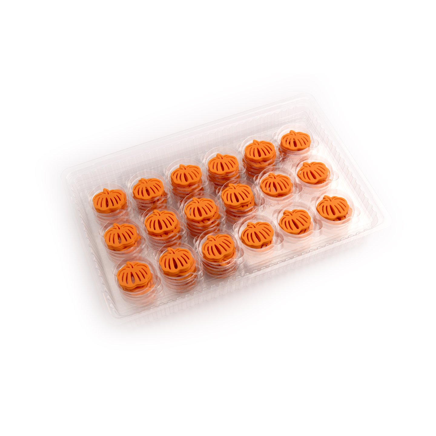 Podtrhněte kouzlo podzimních a halloweenských dezertů s čokoládovými dekoracemi DOBLA. Tyto jemné oválné dekorace v oranžové barvě mají elegantní krajkový motiv dýně, který dodá vašim dortům, zákuskům či zmrzlině originální a sezónní vzhled. Ideální pro slavnostní podzimní vitríny i tematické akce.