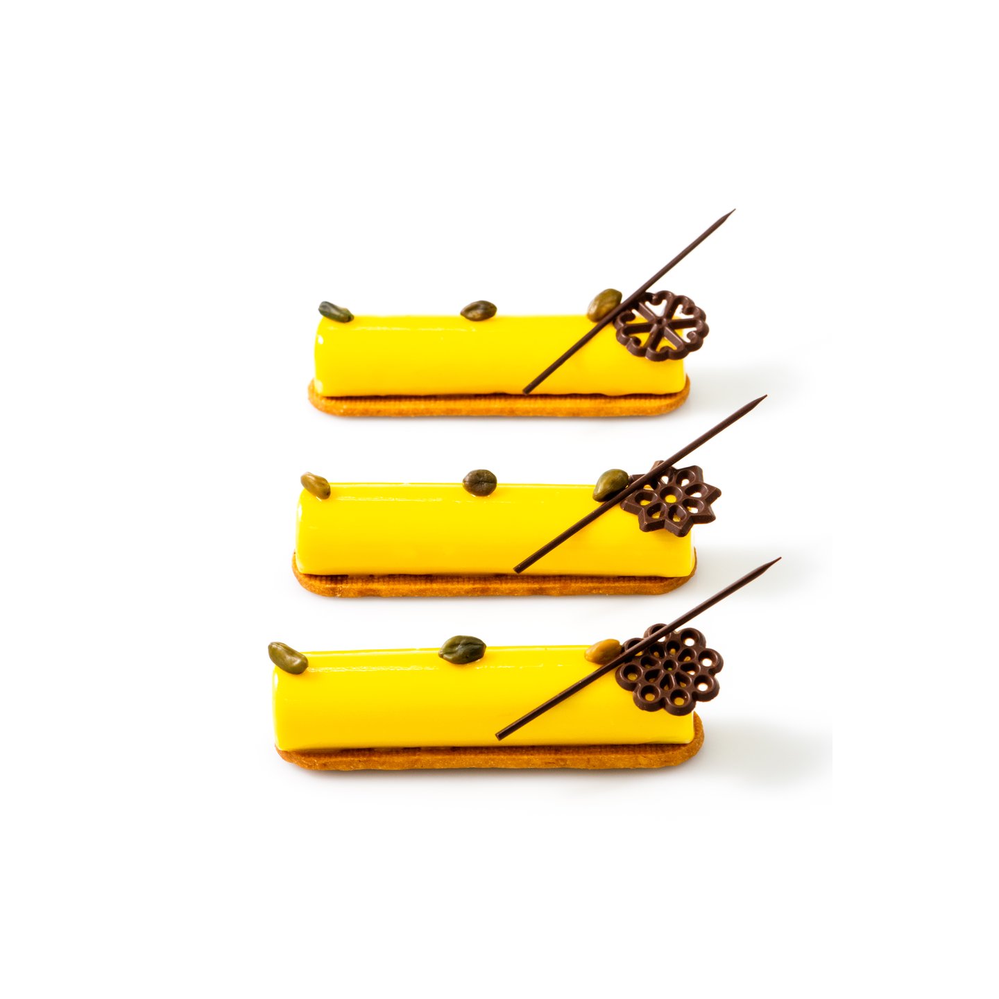Čokoládová dekorace DOBLA ve tvaru jemných filigránových kytiček. Ideální pro jarní, svatební i slavnostní cukrářské kolekce. Detailní a lehký design dodá dezertům elegantní a dekorativní akcent.