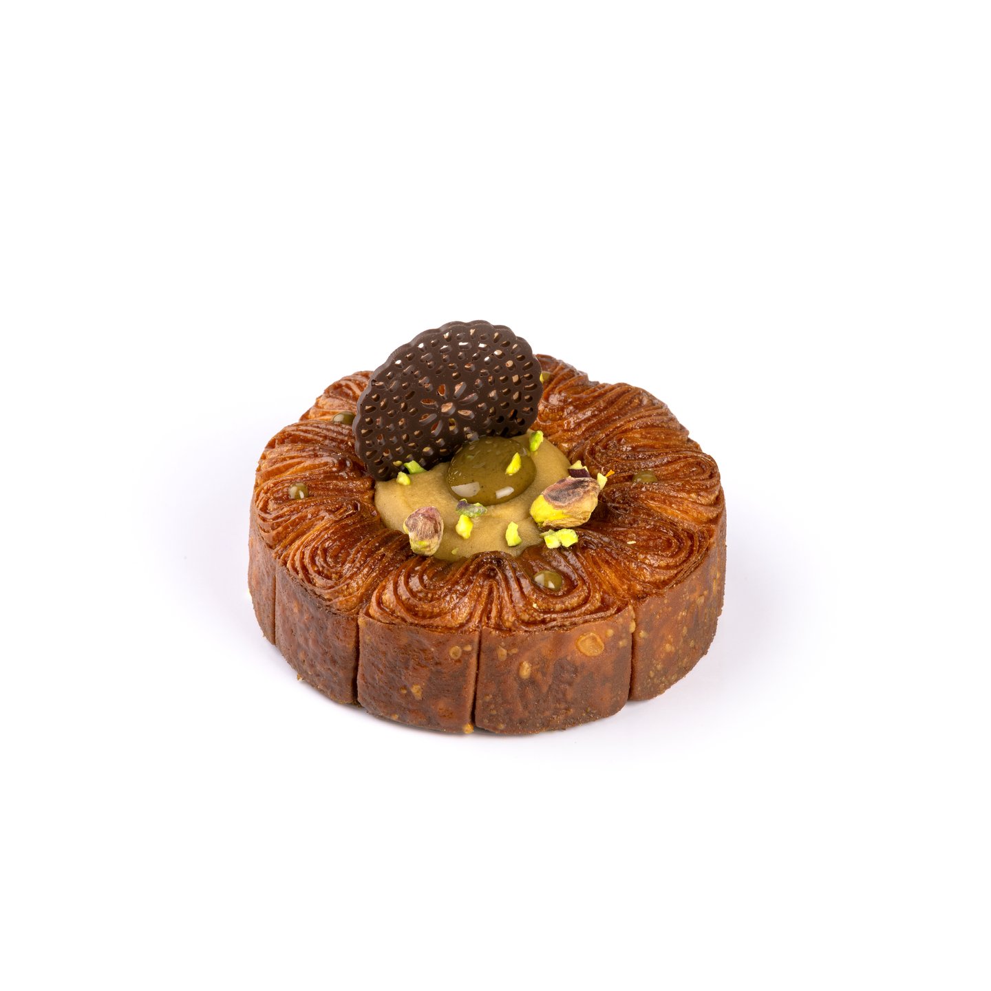 Čokoládová dekorace ve tvaru krajkového kolečka dodá dezertům jemný a elegantní vzhled. Detailní perforovaný design vytváří sofistikovaný efekt a je ideální pro finální dekoraci cukrářských kreací.