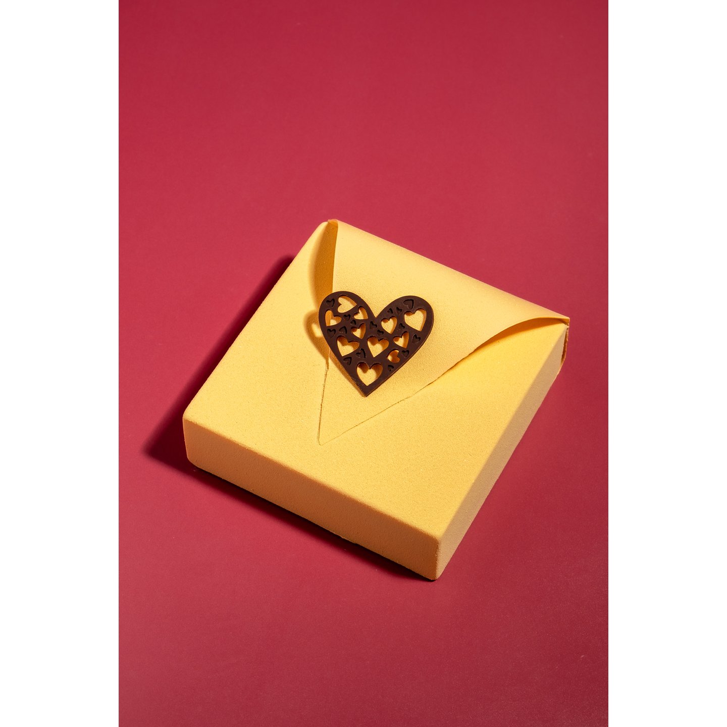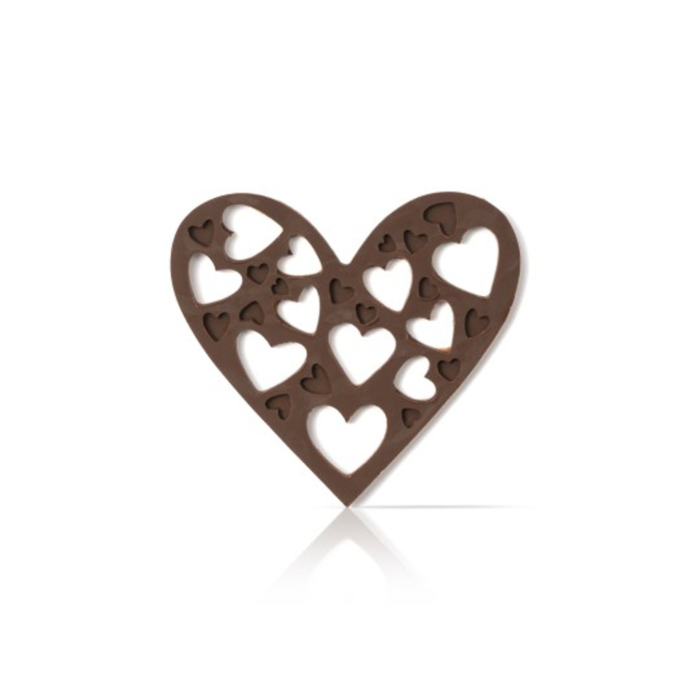 - ✔ Čokoládová dekorace ve tvaru srdce s výřezy srdíček