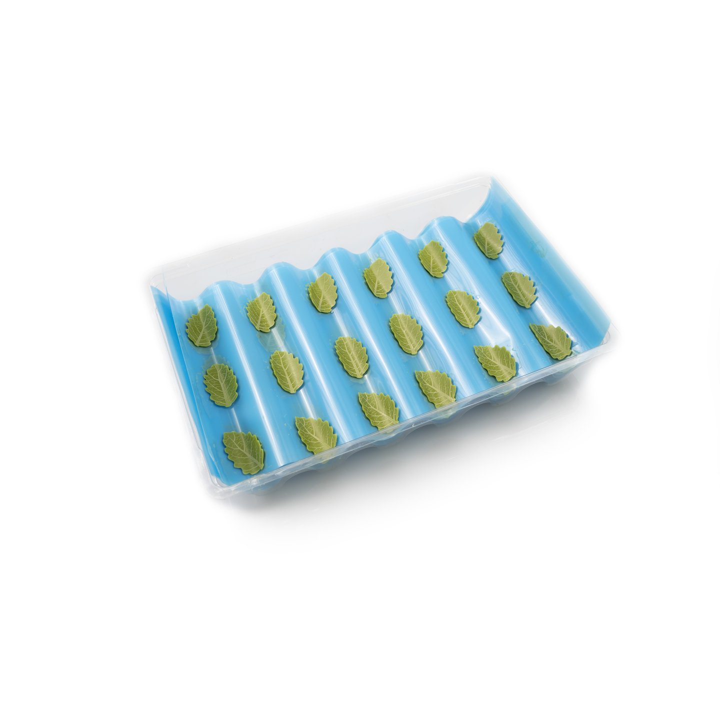 Čokoládová dekorace DOBLA ve tvaru zeleného lístku s jemným reliéfem, ideální pro jarní a přírodně laděné dezerty. Stačí přidat jeden lístek a dezert se krásně zezelená, osvěží a získá přirozený vzhled.