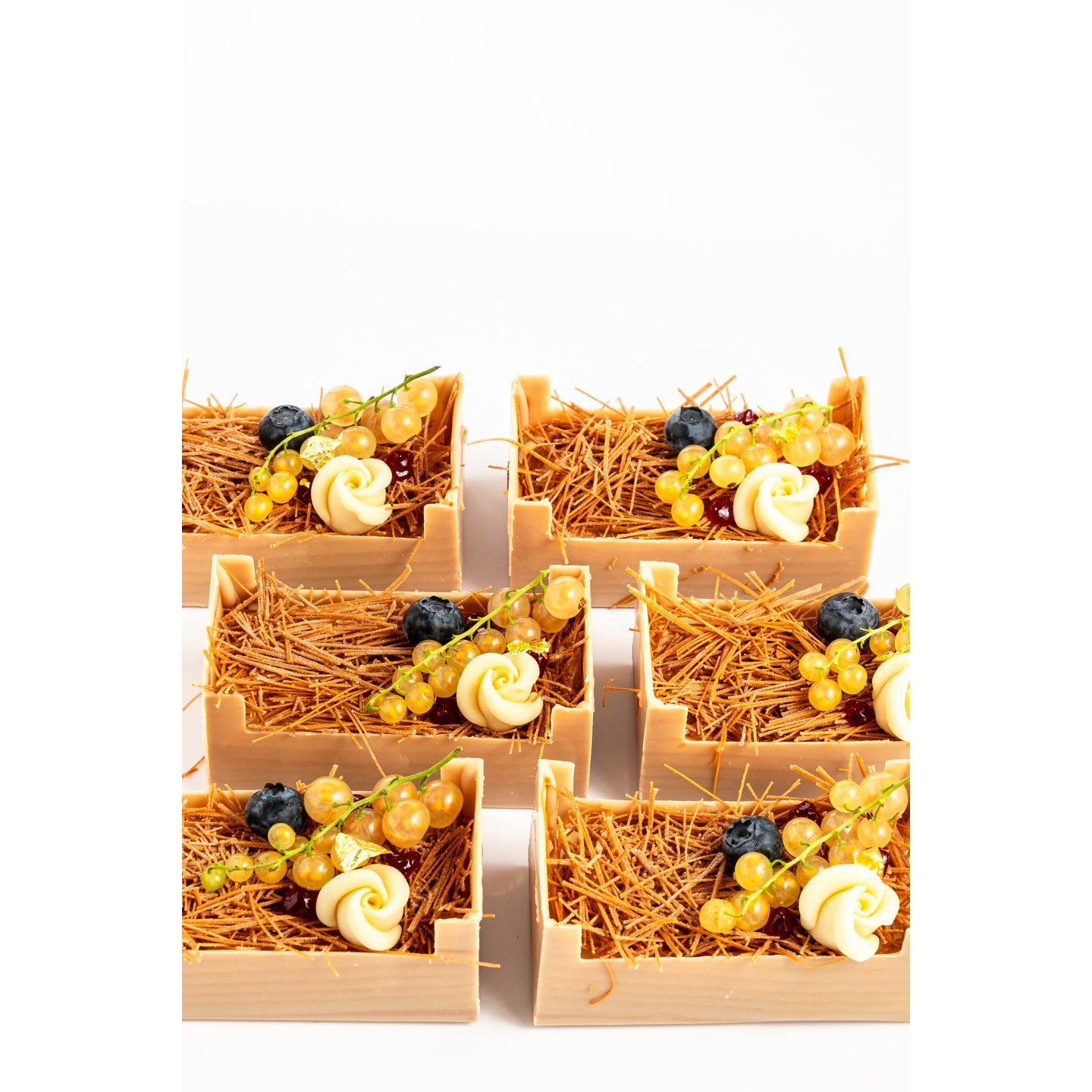 Čokoládový korpus ve tvaru bedýnky na ovoce představuje originální základ pro moderní dezertní koncepty. Duté provedení umožňuje plnění krémy, mousse, ganache, ovocnými komponenty či dalšími náplněmi a vytváří výrazný vizuální prvek v prémiových cukrářských kolekcích.