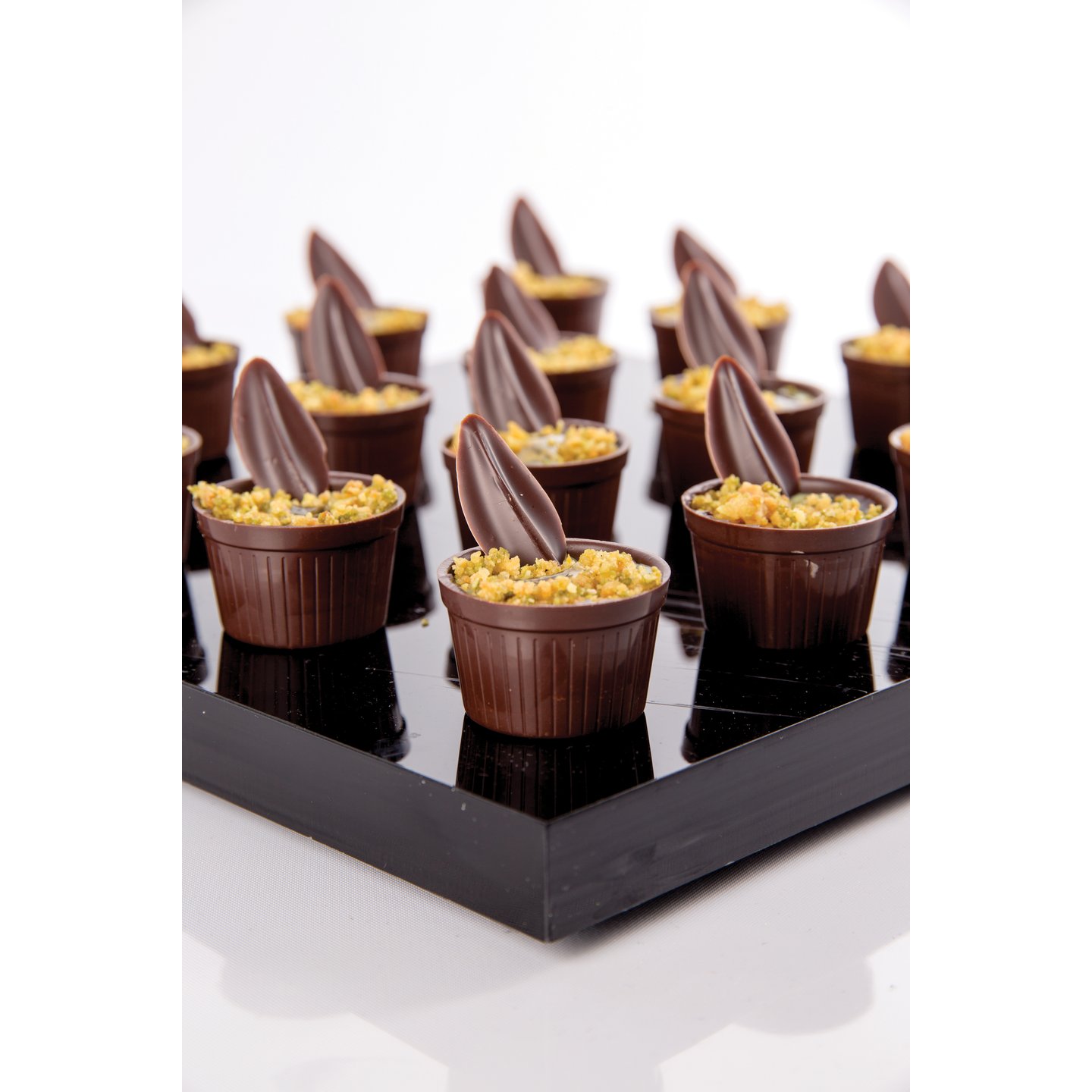 Originální forma květináče z hořké čokolády dodá dezertu výrazný charakter, atraktivní vizuální efekt a podtrhne jeho prémiové provedení.