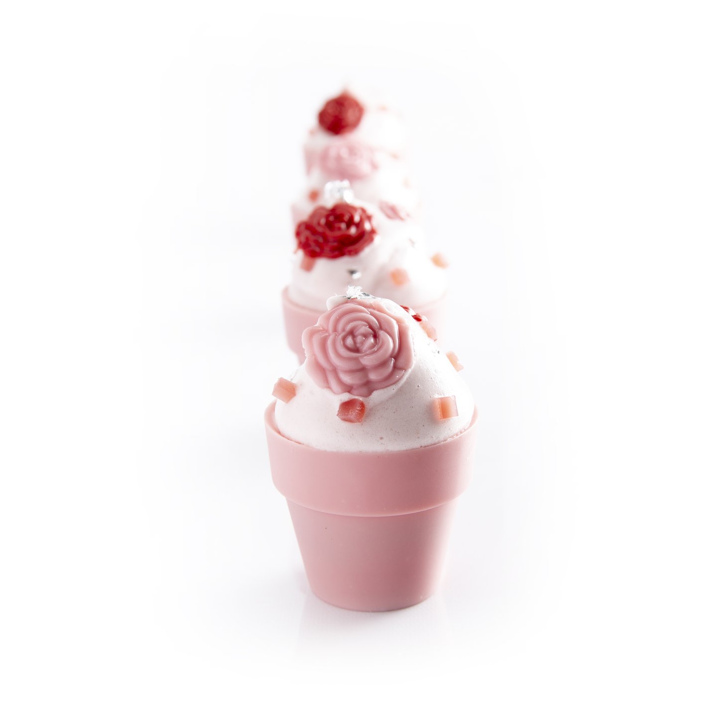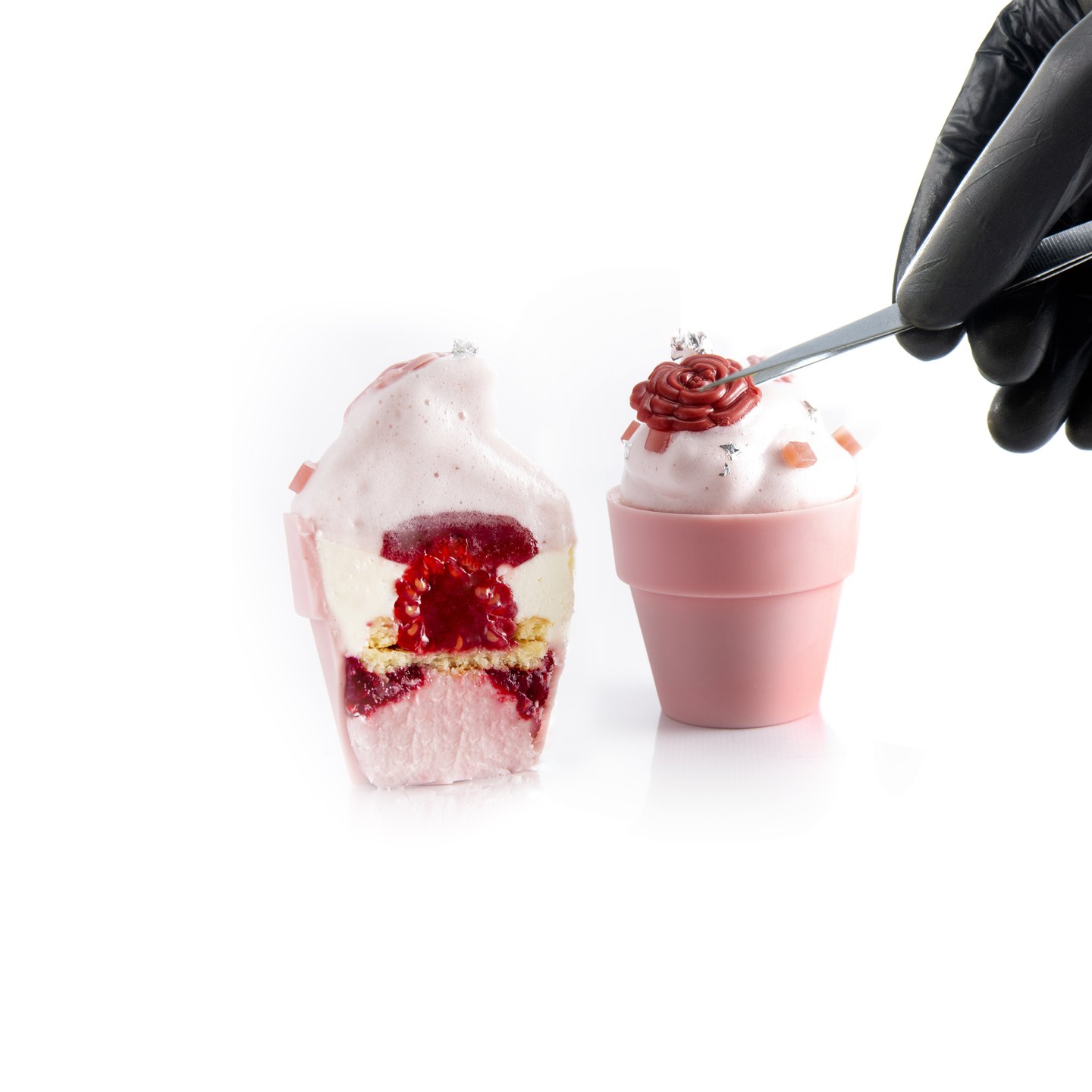 Růžový čokoládový květináč dodá dezertu nápaditost a pozvedne jeho prezentaci na prémiovou úroveň. Originální design vytváří výrazný vizuální efekt a nezapomenutelný „wow“ dojem. 💗