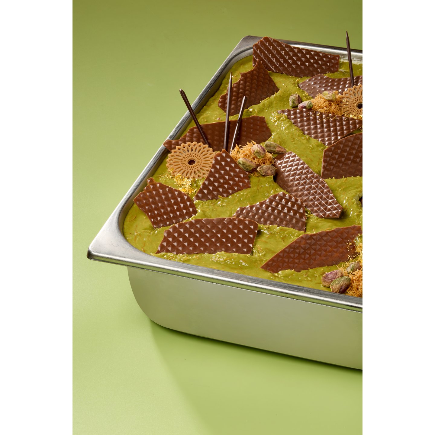 Gelato Cremino Dubai - Mléčná čokoládová zmrzlina s křupavým pistáciovým vkladem a variegatem ve stylu Dubai.