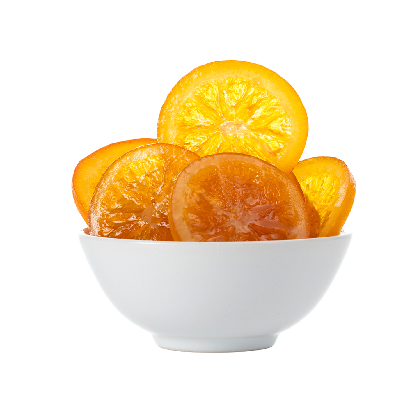 Naše kandované pomeranče jsou vyrobeny z pečlivě vybraných, zralých plodů, které byly jemně kandovány, aby si zachovaly svou pevnost a pružnost. Tyto plátky mají průměr mezi 55 a 70 mm a tloušťku 5 až 7 mm, což zajišťuje optimální texturu pro široké použití v gastronomii.