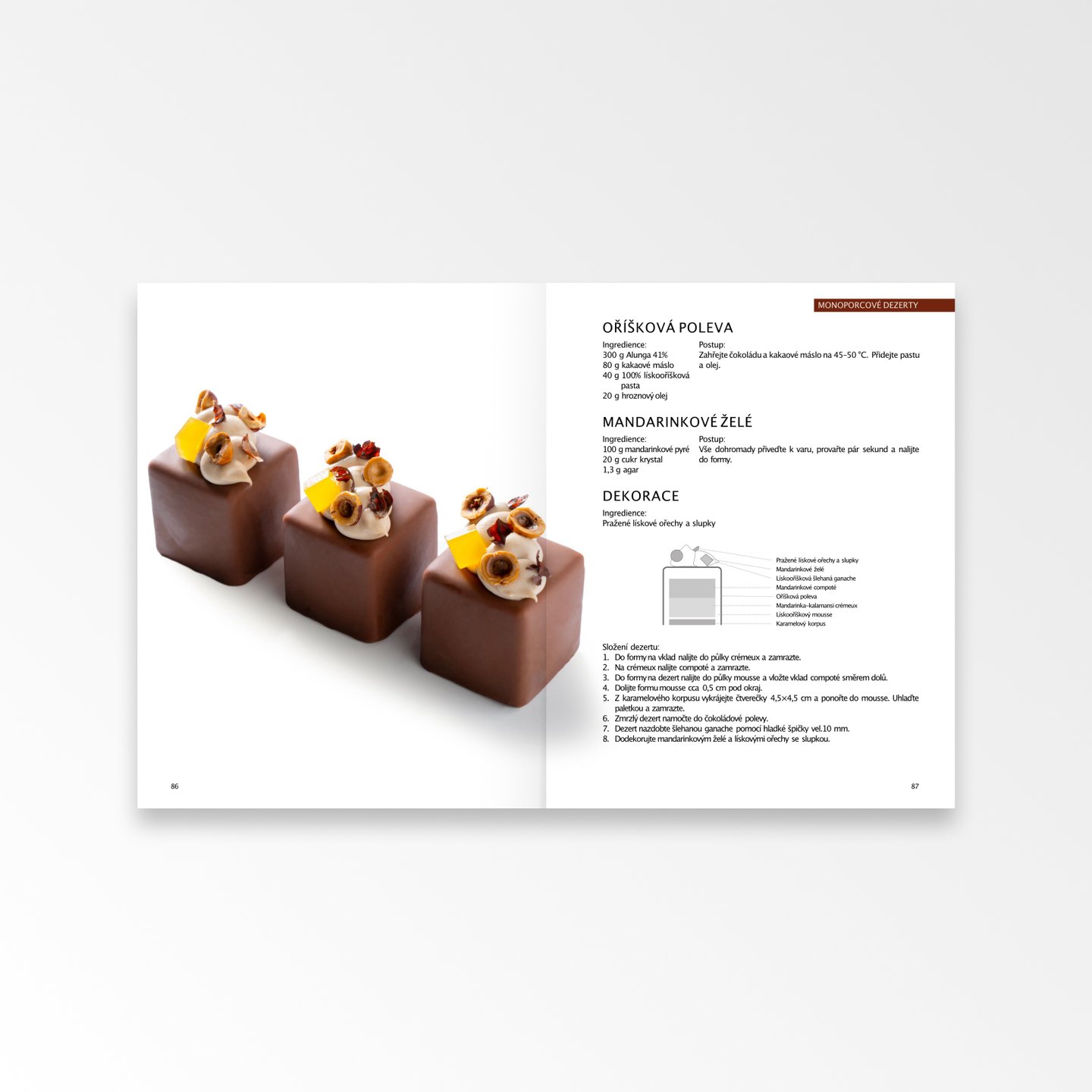 - V knize naleznete u každého receptu detailní popis, krásné ilustrace a fotografie, abyste si mohli udělat obrázek o tom, jak bude výsledný dezert vypadat složený.
