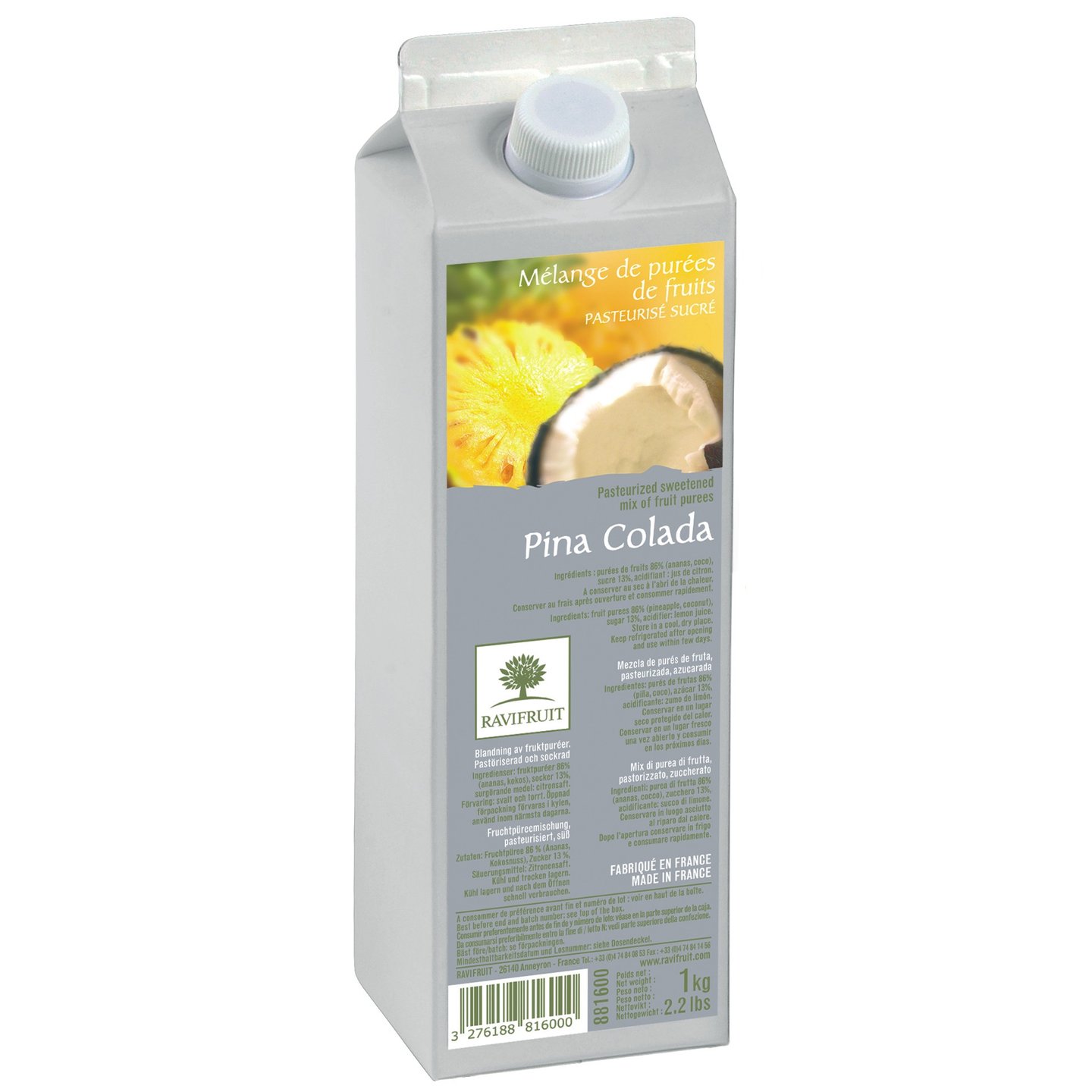 Pasterizované pyré PINACOLADA COCKTAIL obsahuje 86% kokosu a ananasu, 13% cukru a citronovou šťávu.