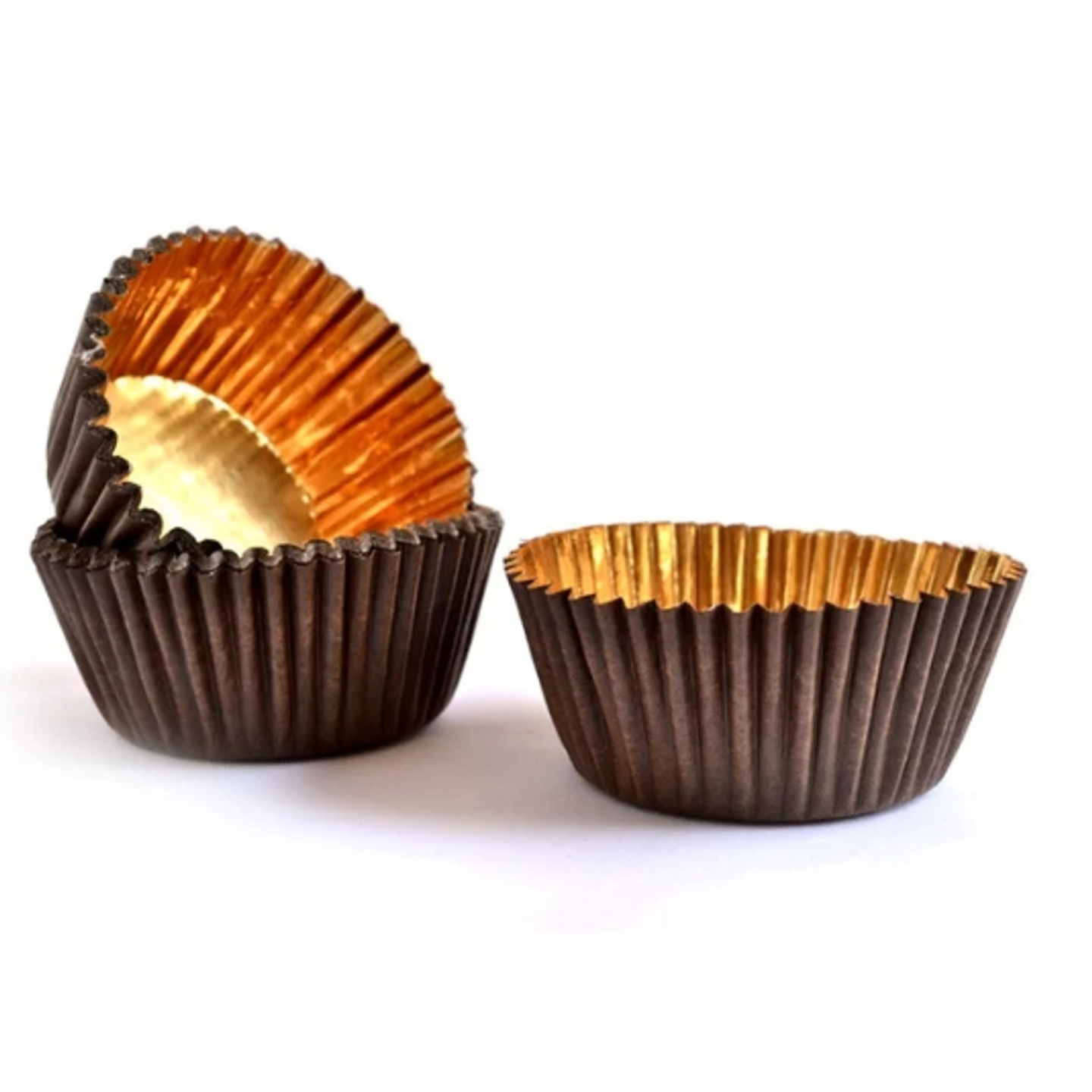 Elegantní papírový košíček s hnědým exteriérem a luxusním zlatým vnitřkem je ideální volbou pro servírování pralinek, mini dezertů či dalších drobných sladkých specialit.