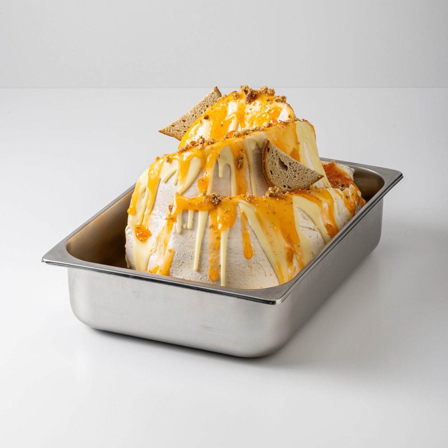 Italská snídaně v podobě lahodného pečiva, kousků meruněk a karamelové omáčky v podobě zmrzliny, rychle a snadno!