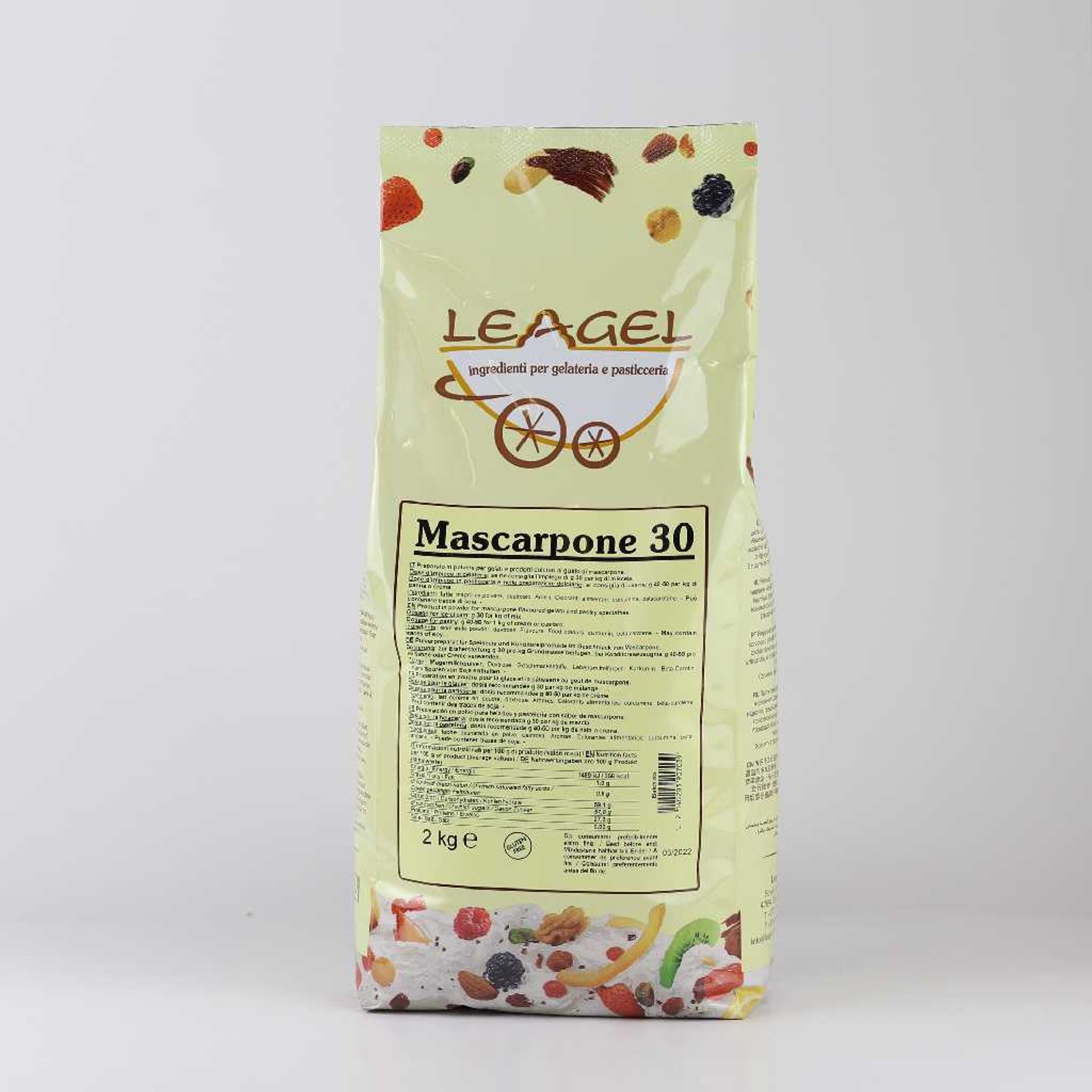 Mascarpone 30 je práškový polotovar připravený ze sušeného mascarpone, určený pro výrobu gelata a cukrářských specialit. Patří do řady koncentrovaných produktů Leagel Specialties, které zvýrazňují chuť a dodávají zmrzlině plný, autentický charakter.