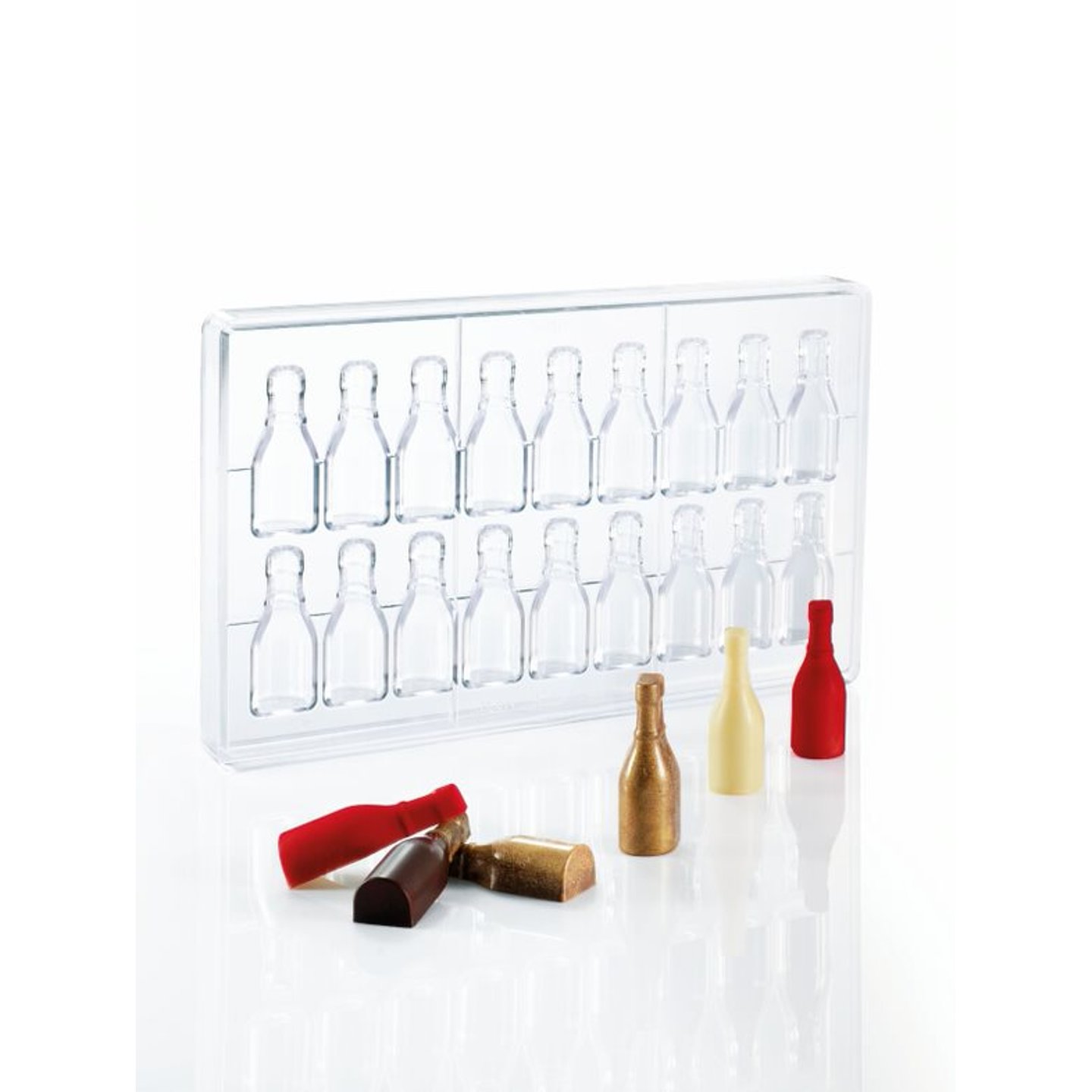 Polykarbonátová forma vhodná k výrobě čokoládových tabulek/pralinek.
