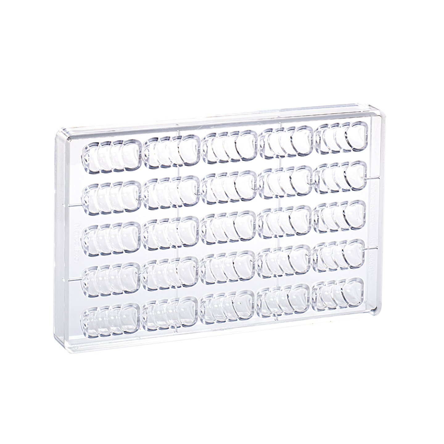 Polykarbonátová forma vhodná k výrobě čokoládových tabulek/pralinek.