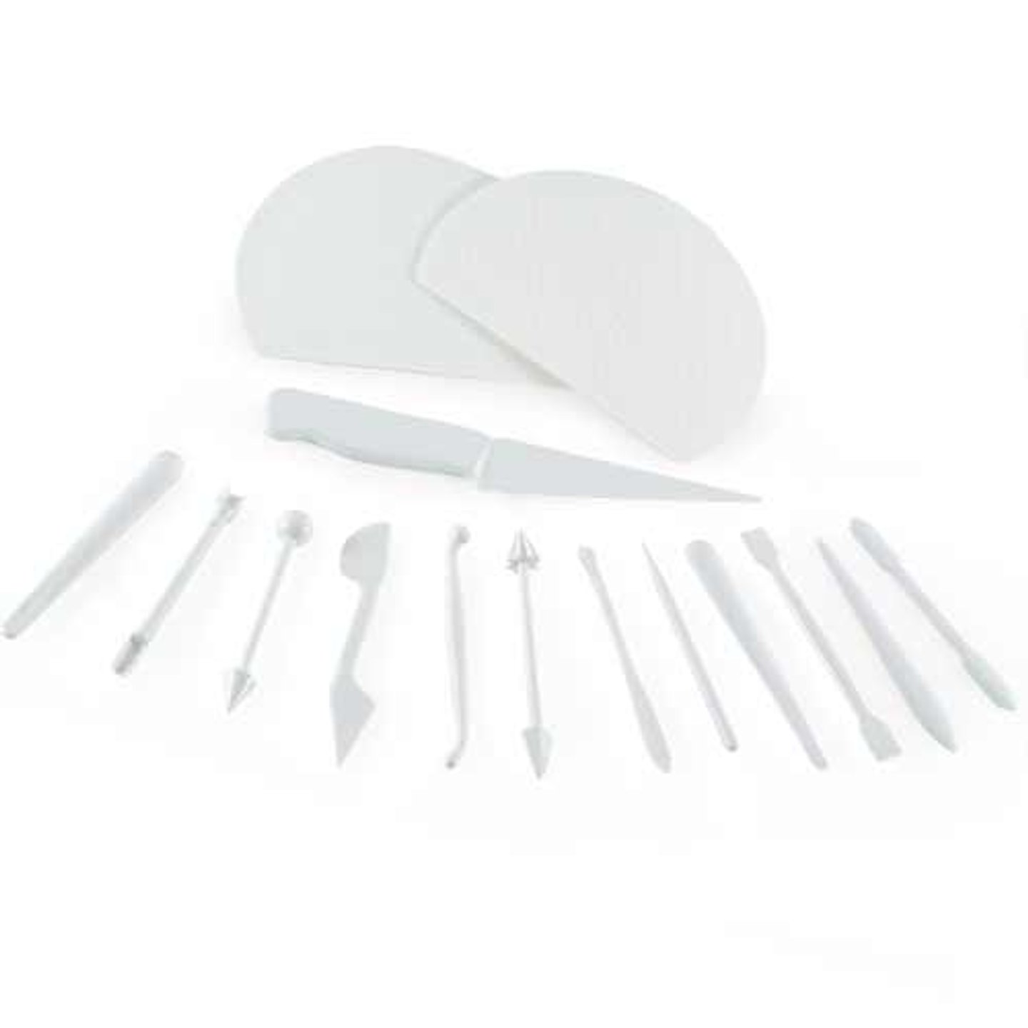 Sada plastových nástrojů je určena k výrobě dekorací, modelování a práci s marcipánem.