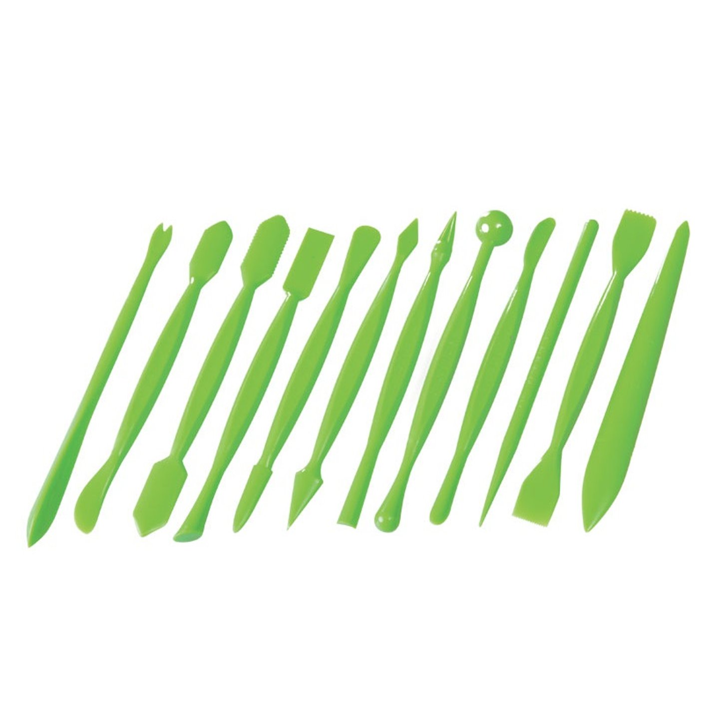 Sada zelených plastových nástrojů je určena k výrobě dekorací a modelování.