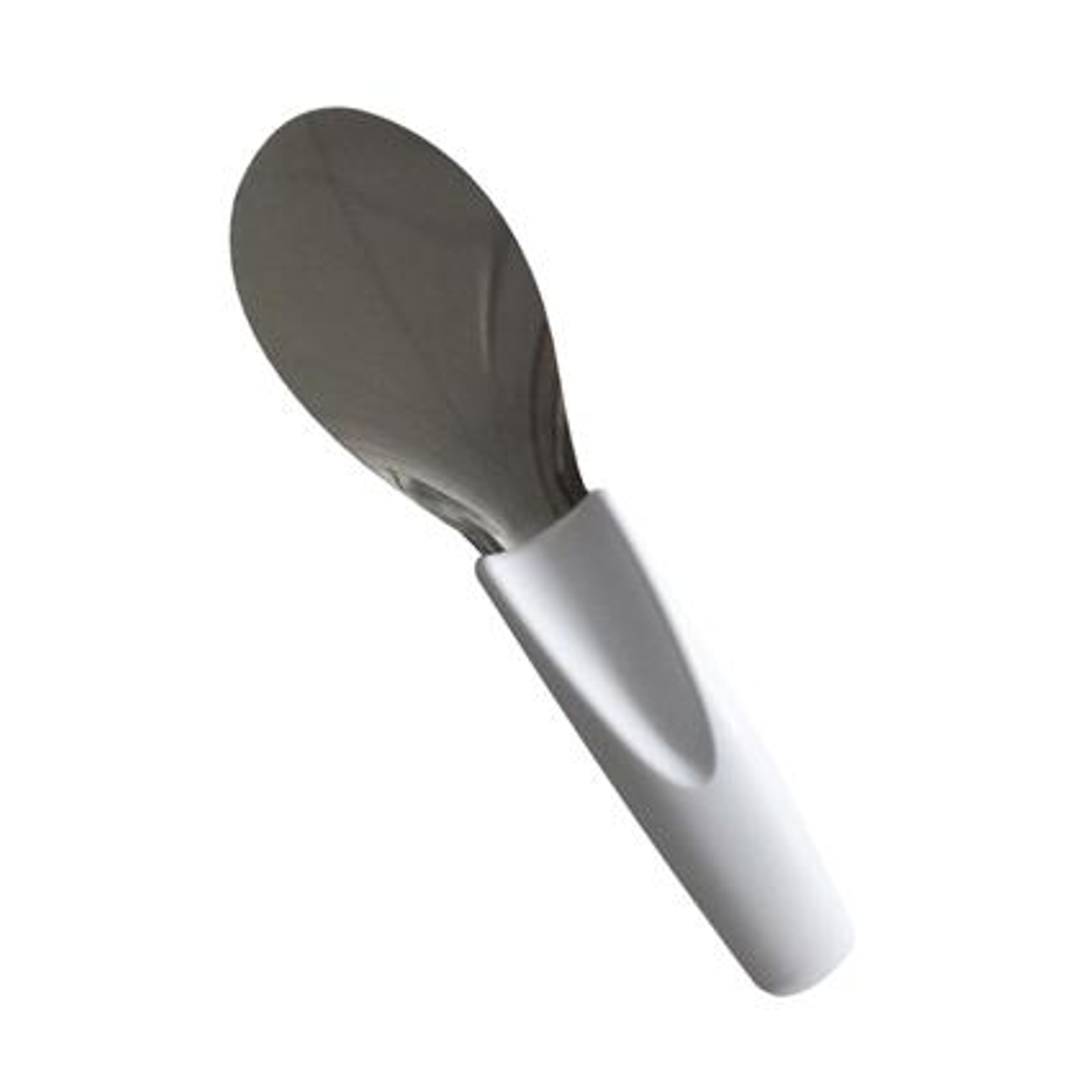 Zmrzlinová špachtle s plastovou bílou rukojetí.