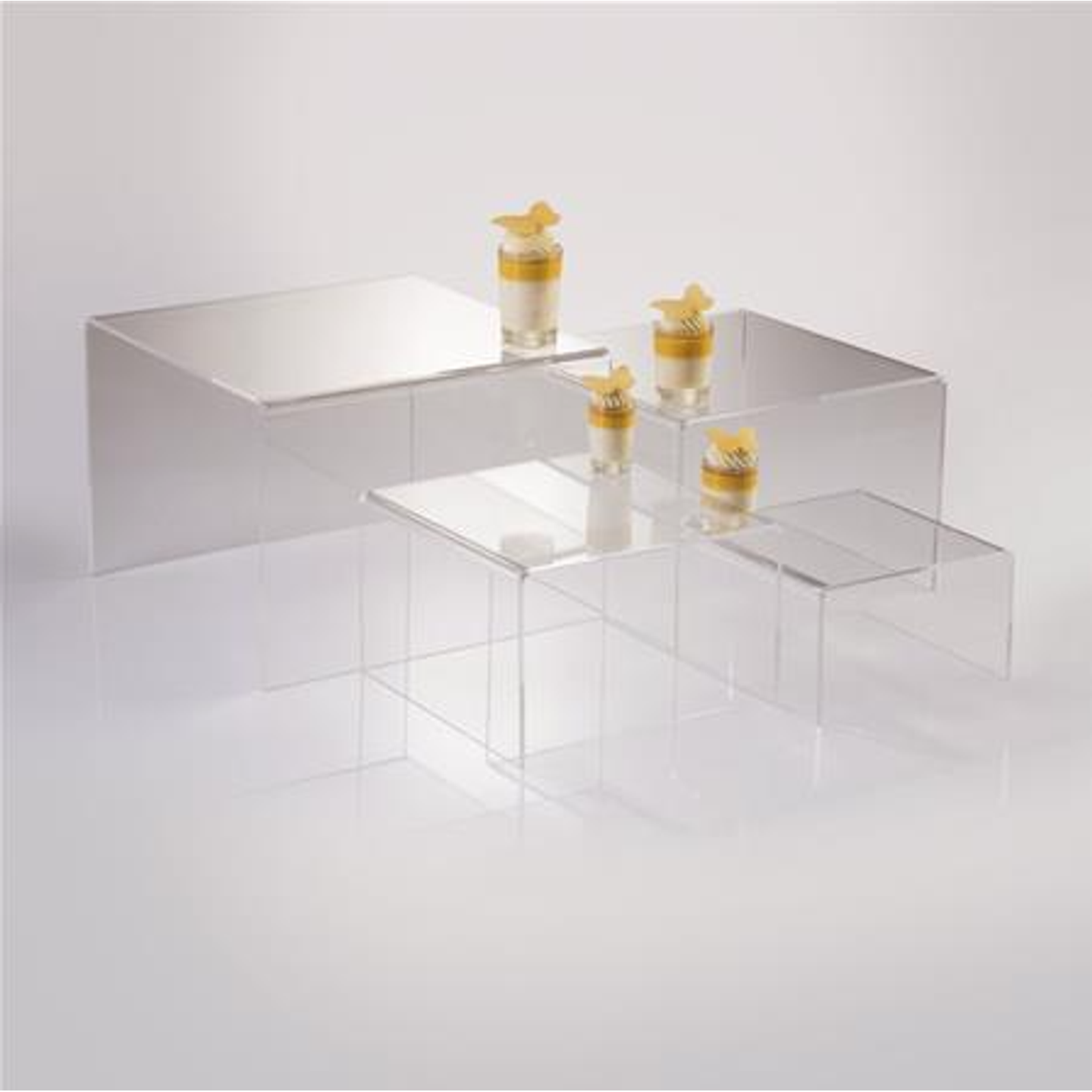 Krásné stojany z tvrzeného plastu ve tvaru krychlí pod Váš dort.