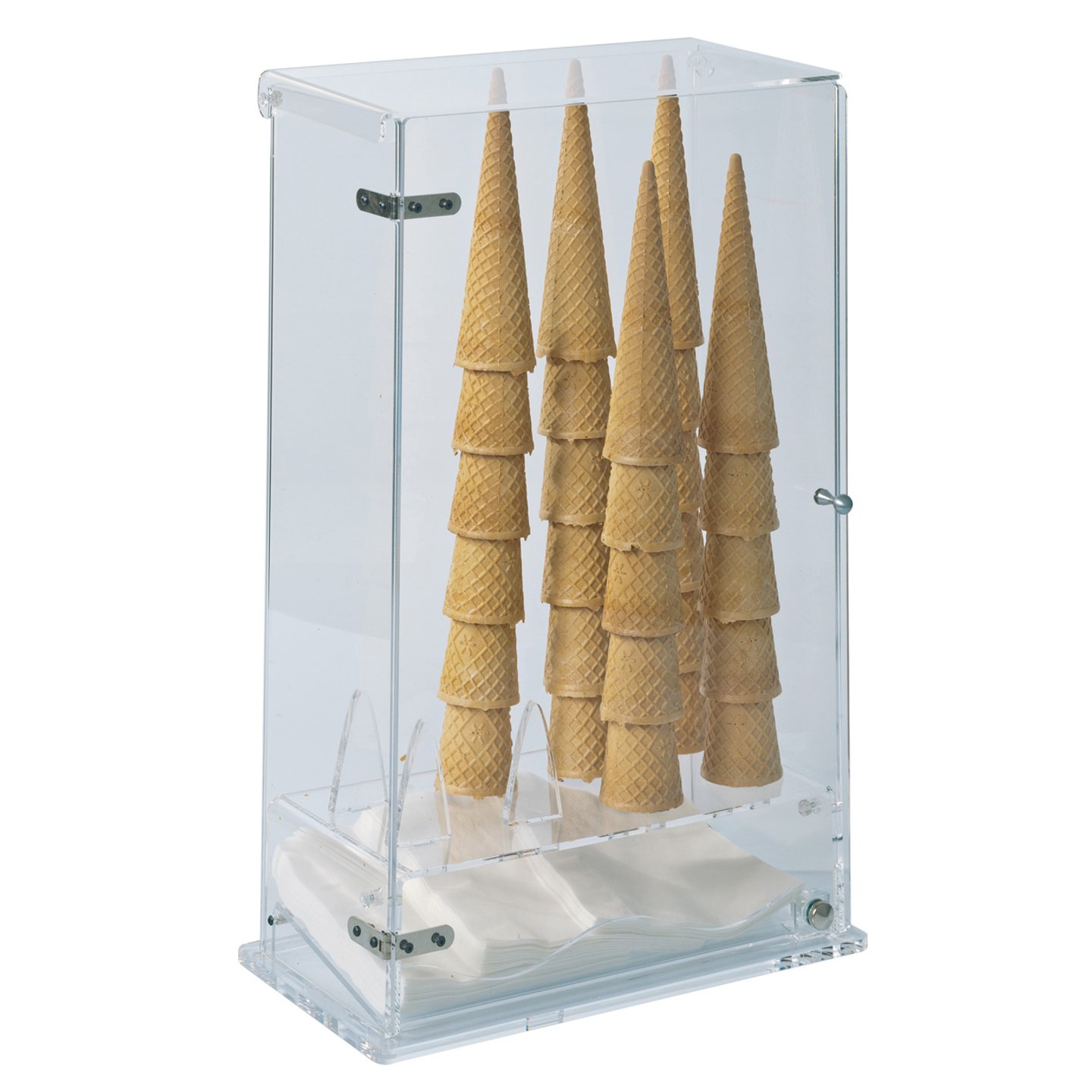 Polykarbonátový zásobník na kornouty a ubrousky.