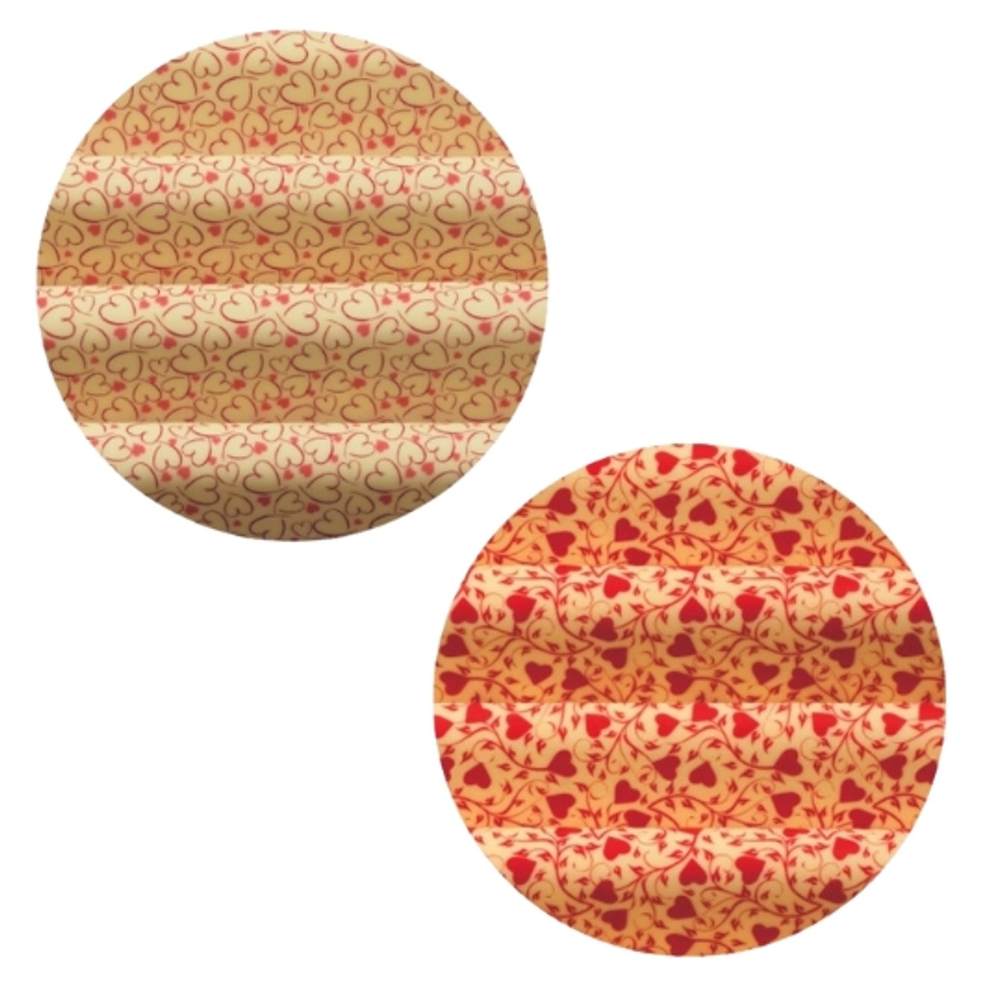 Fólie potištěné kakaovým máslem s romantickými vzory srdíček – Amour a Passion pro dokonalé valentýnské dekorace.