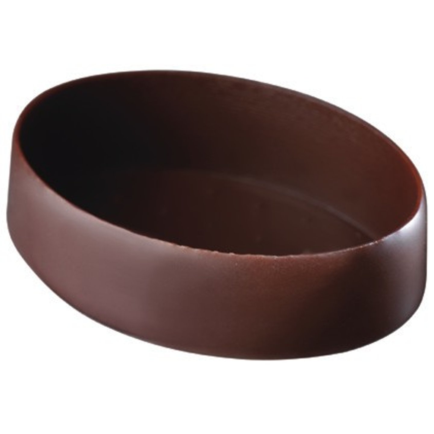 - Čokoládový korpus oválného tvaru z hořké čokolády.