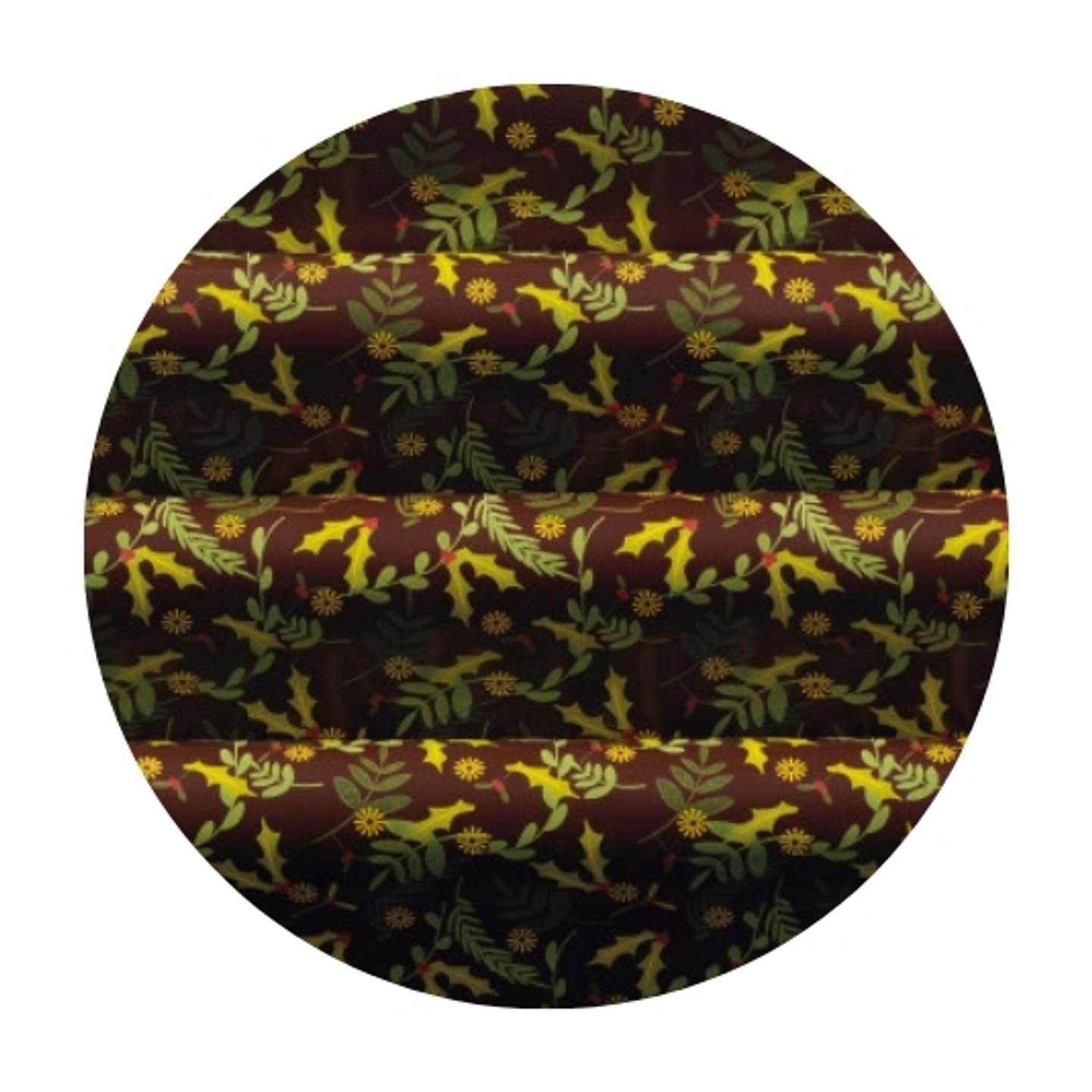 Transfer fólie potištěná kakaovým máslem s krásným vánočním vzorem je ideálním nástrojem pro vytváření originálních designů na čokoládových výrobcích.