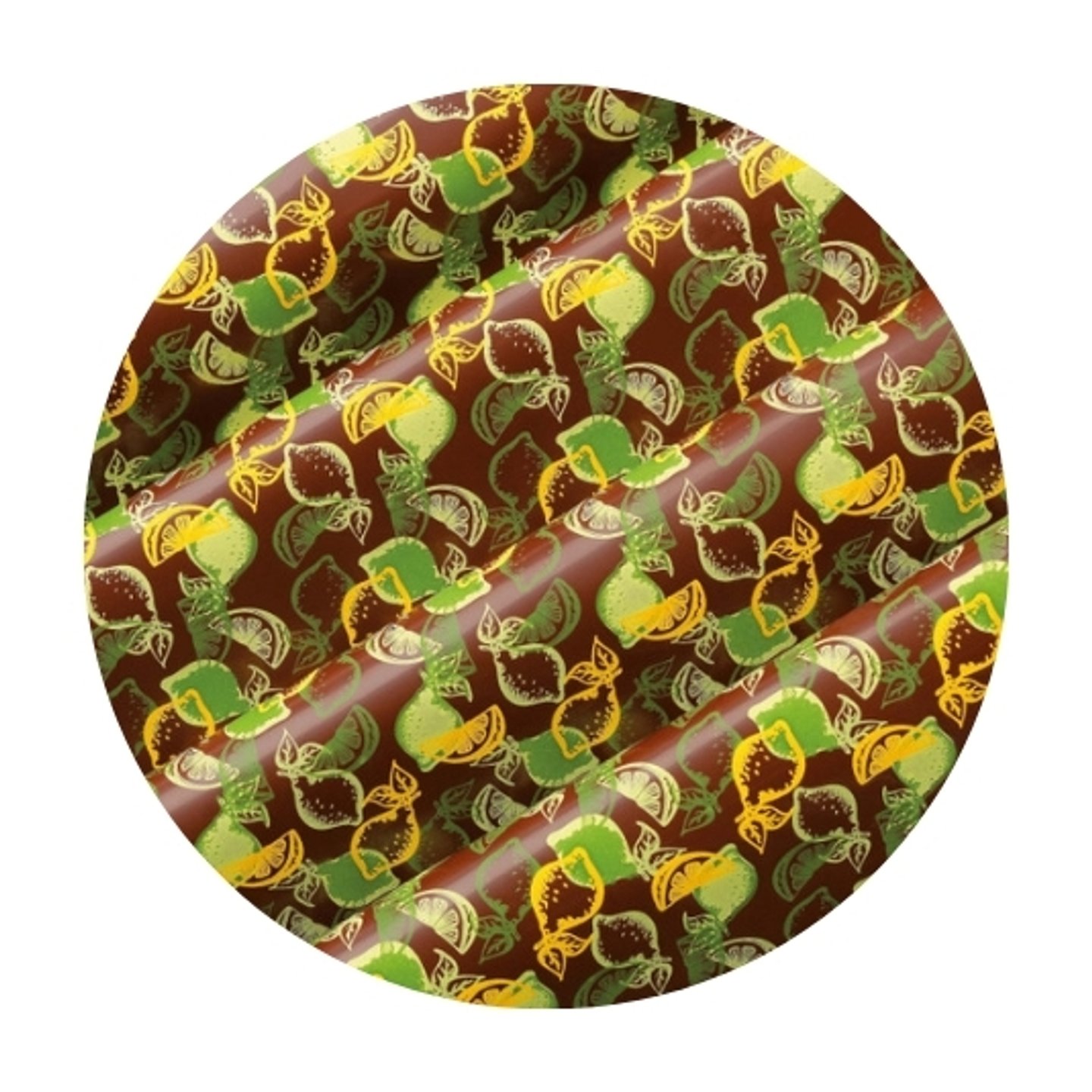 Transfer fólie je fólie potištěná kakaovým máslem se vzorem citronů a limetek.