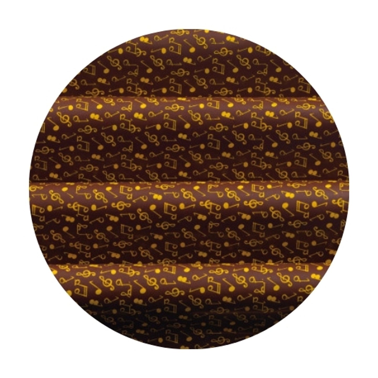 Transfer fólie je fólie potištěná kakaovým máslem se vzorem not zlaté barvy.