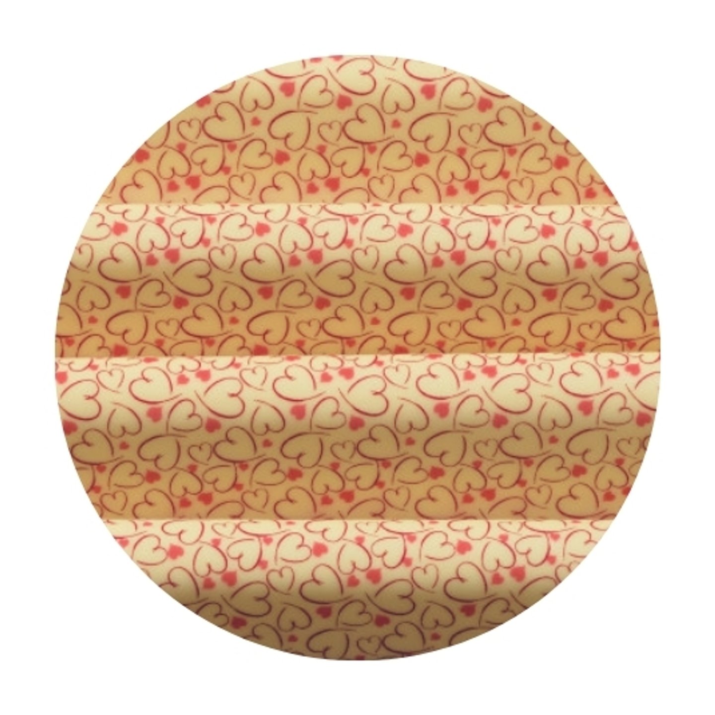 Transfer fólie je fólie potištěná kakaovým máslem se vzorem srdíček.