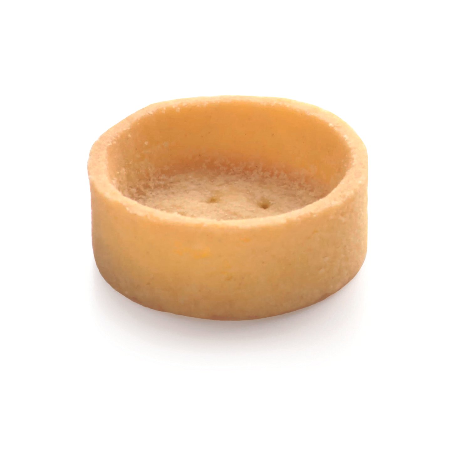 Hotový tartaletkový neutrální korpus kulatého tvaru připravený k naplnění.
