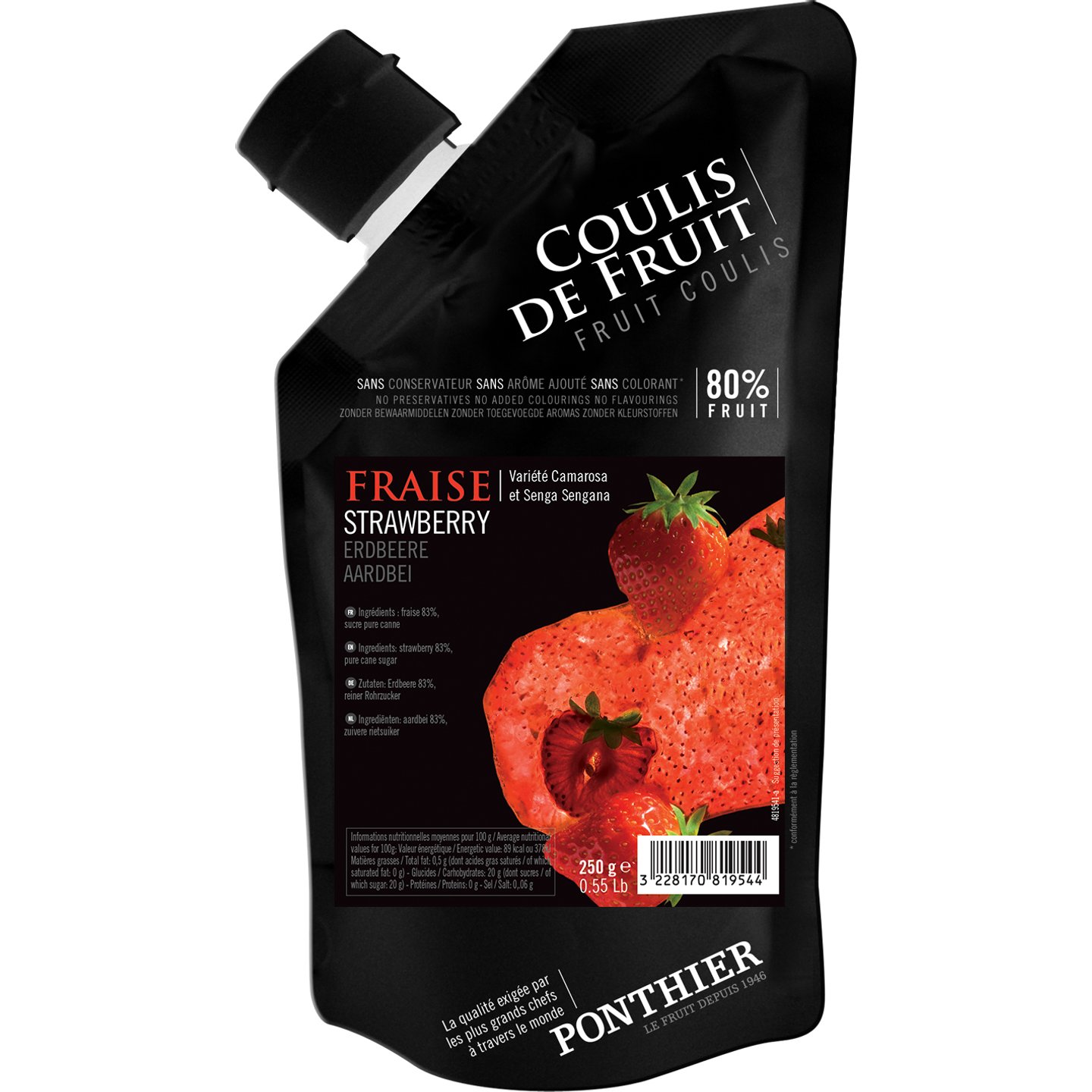 - Díky kombinaci dvou odrůd jahod (Camarosa a Mara de Bois) má toto pyré vyjímečnou vůni a vyváženou chuť čerstvých a plných jahod.