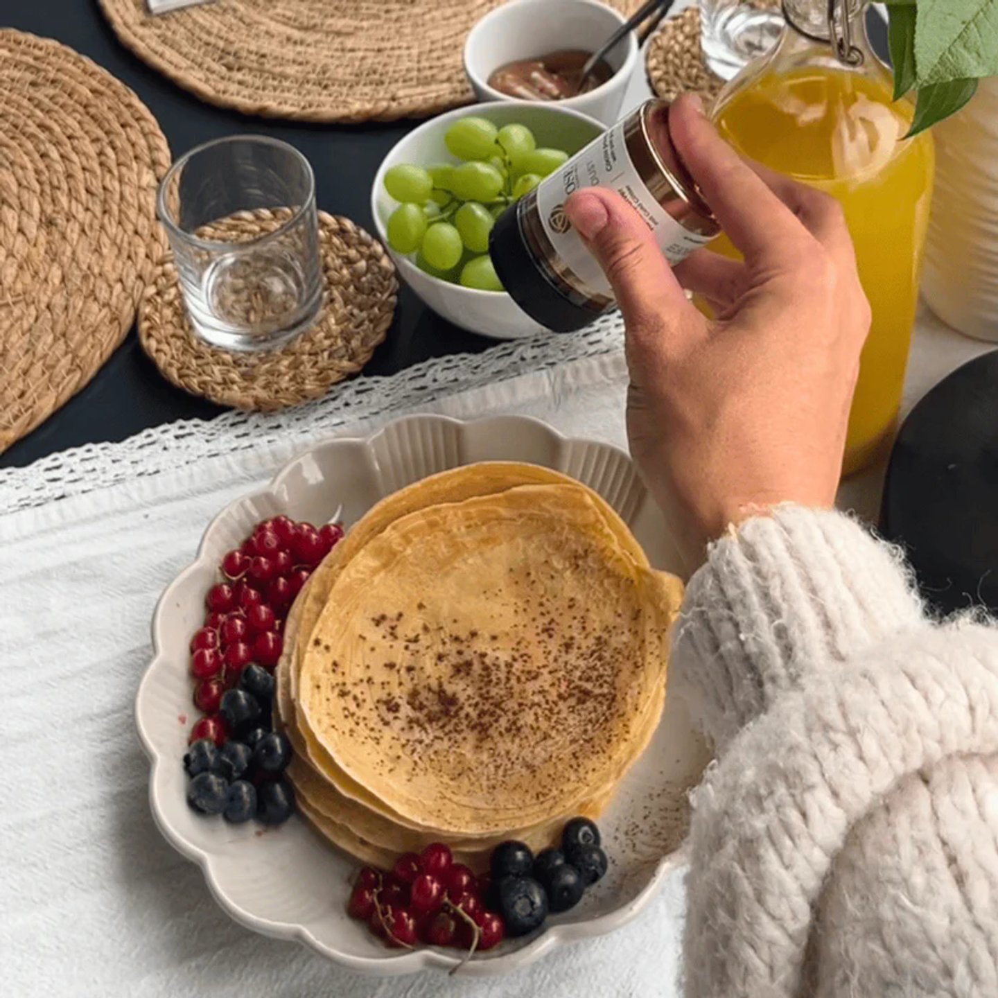 S třpytivým práškem od Rosie Rose můžete dodat svým výtvorům jemný třpyt – ať už na pečivo, čokoládu, dezert nebo do nápojů. Tyto vynikající prášky jsou 100% jedlé, veganské a bez obsahu E171 (oxidu titaničitého). Můžete je přímo posypat nebo vytvořit cílené zvýraznění – bez jakékoli přípravy.