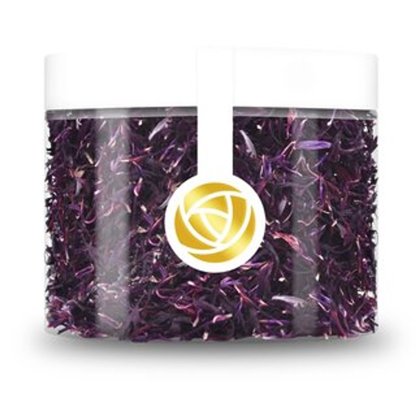 Sušené fialové lístky chrpy jsou krásná jedlá dekorace, která dodá dezertům, nápojům i pokrmům elegantní a přirozený vzhled. 🌸 Jejich sytá fialová barva vytváří výrazný barevný akcent a snadno promění každé servírování v malý vizuální zážitek.