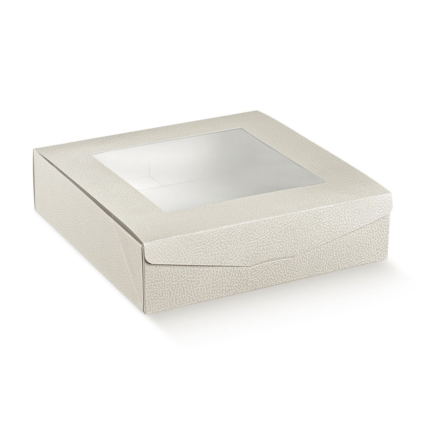 SC Krabice na cukroví s okénkem potisk bílá kůže 26x26x7cm 5x10ks