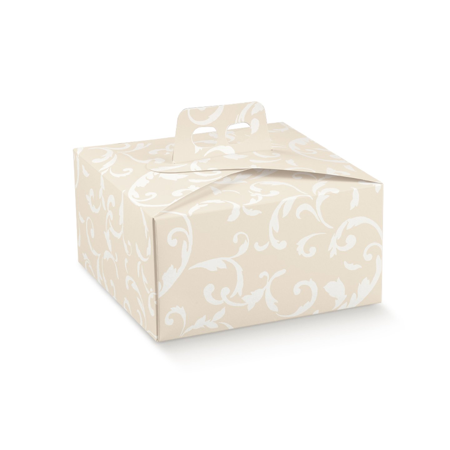 SC Krabice na dort hranatá s uchem potisk Damascato avorio 21x21x12cm 5x20ks