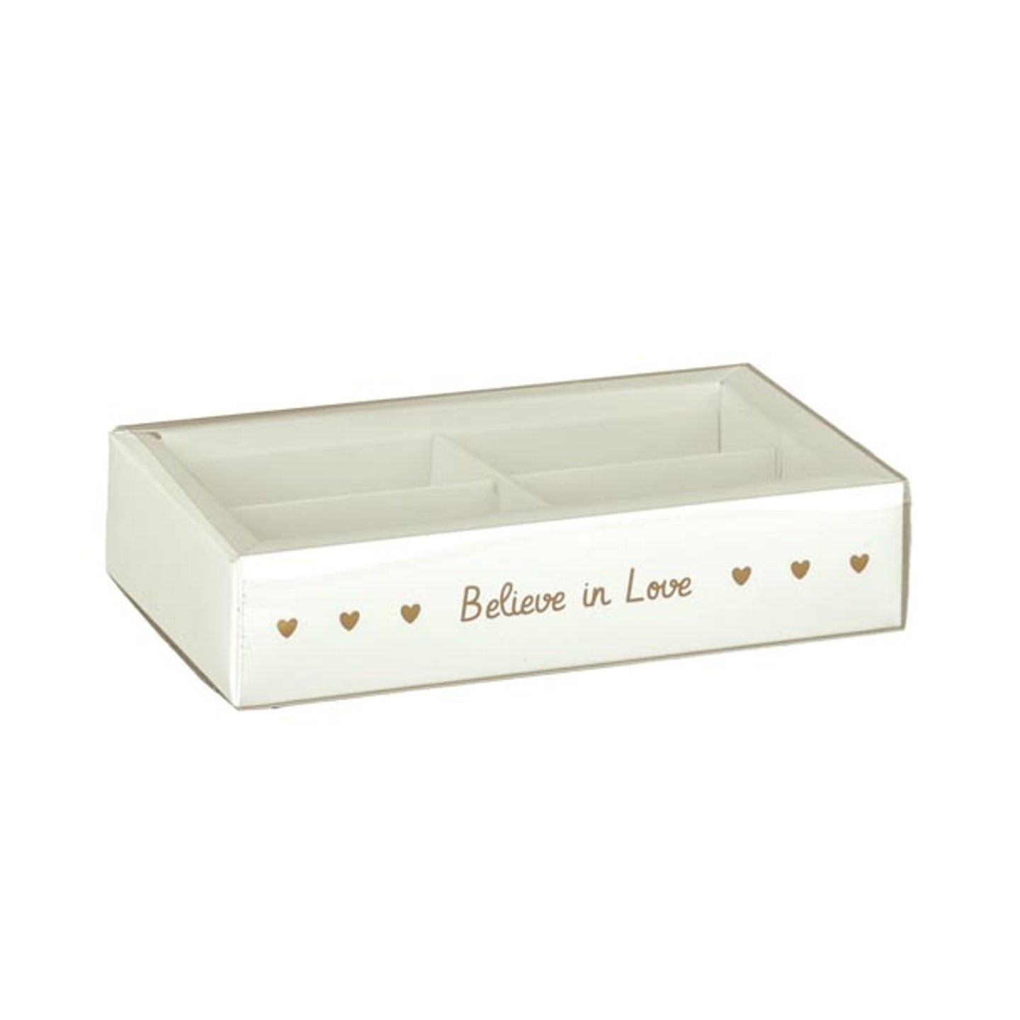 SC Krabička bílá 145x75x35 Believe in love s průhledným víčkem 5x10ks