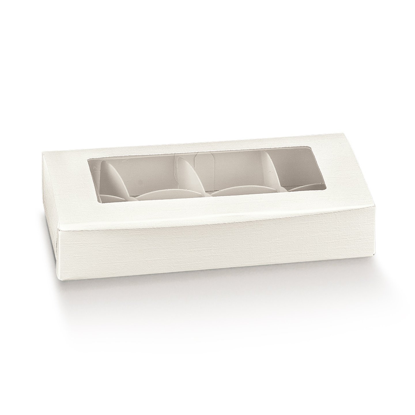 Krabička na 8ks pralinek s průhledným víčkem a bílým vkladem.