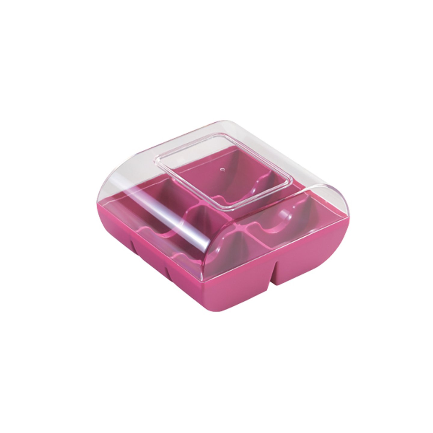 - Box se skládá ze dvou částí - průhledného víčka a barevného boxu, do kterého lze makrónky uskladnit.