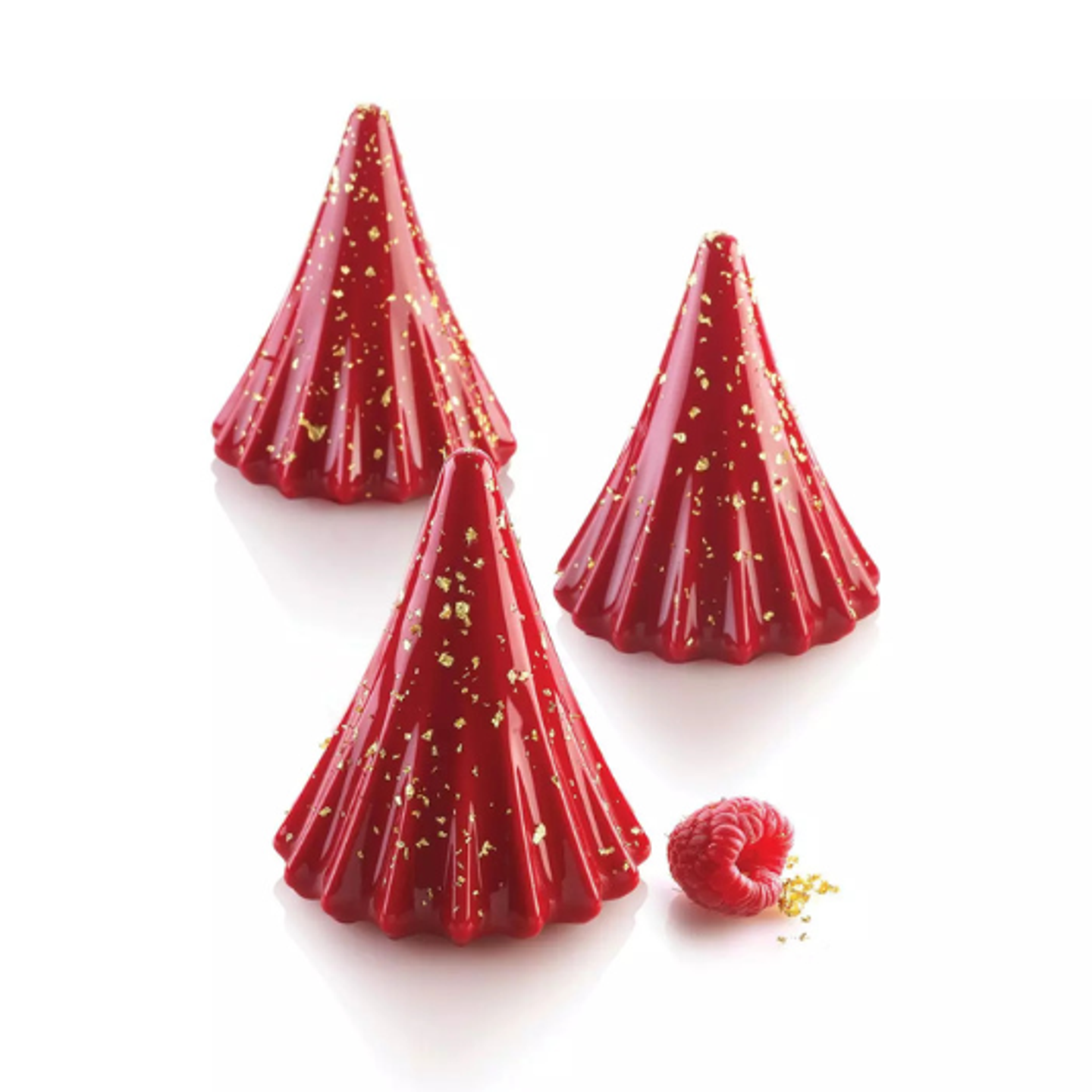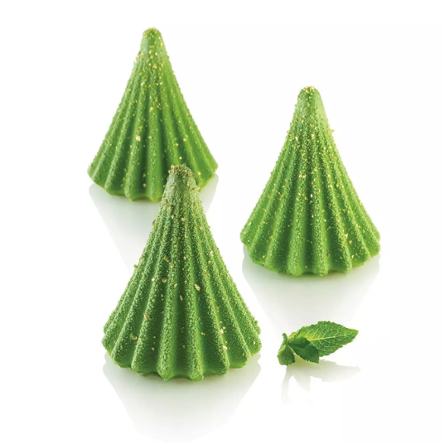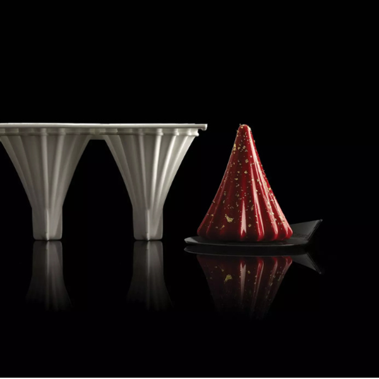 Forma je vyrobena ze 100% platinum silikonu, který zajišťuje přirozeně nepřilnavý povrch a vysokou flexibilitu. Dezerty se z formy snadno vyjímají a zachovávají všechny detaily designu. Materiál je vhodný jak pro pečení v troubě, tak pro mražení nebo šokové zchlazení.
