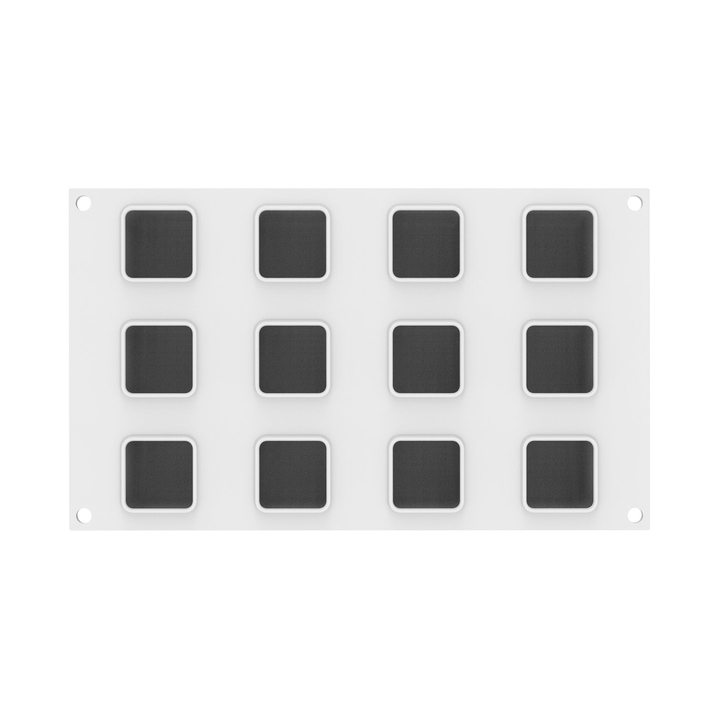 Forma obsahuje 12 dutin o objemu 85 ml, díky nimž můžete připravit stylové mousse dezerty, semifreddo nebo moderní vitrínové zákusky. Tvar kostky je velmi univerzální a skvěle se hodí pro dekorování pomocí zrcadlové glazury, sametového efektu (velvet spray) nebo čokoládového spreje.
