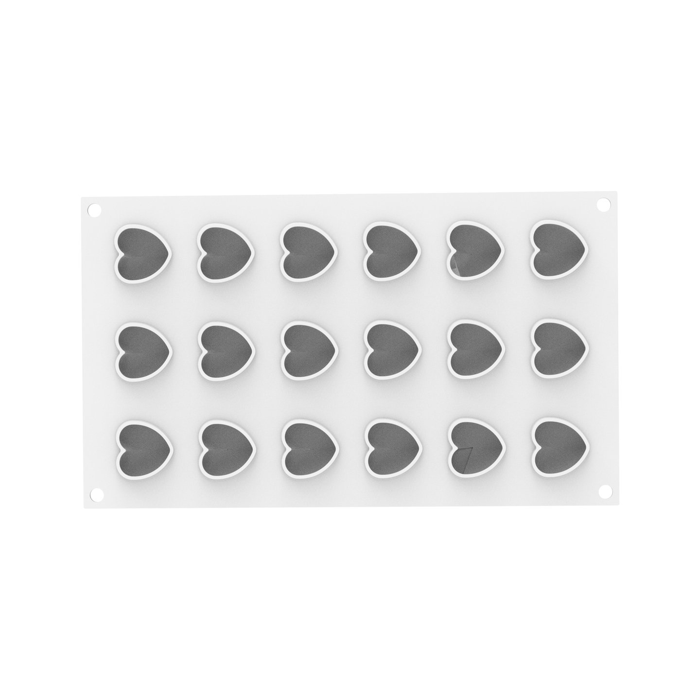 Forma obsahuje 18 dutin o objemu 13 ml, které umožňují připravit malé, ale výrazné dezerty s jemnými detaily. Tvar srdce je univerzální a skvěle se hodí pro romantické příležitosti, svatby, oslavy nebo speciální sezónní nabídky.