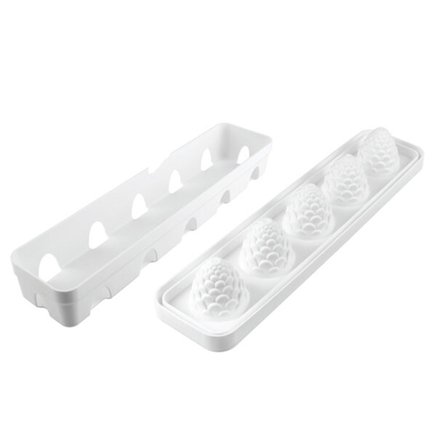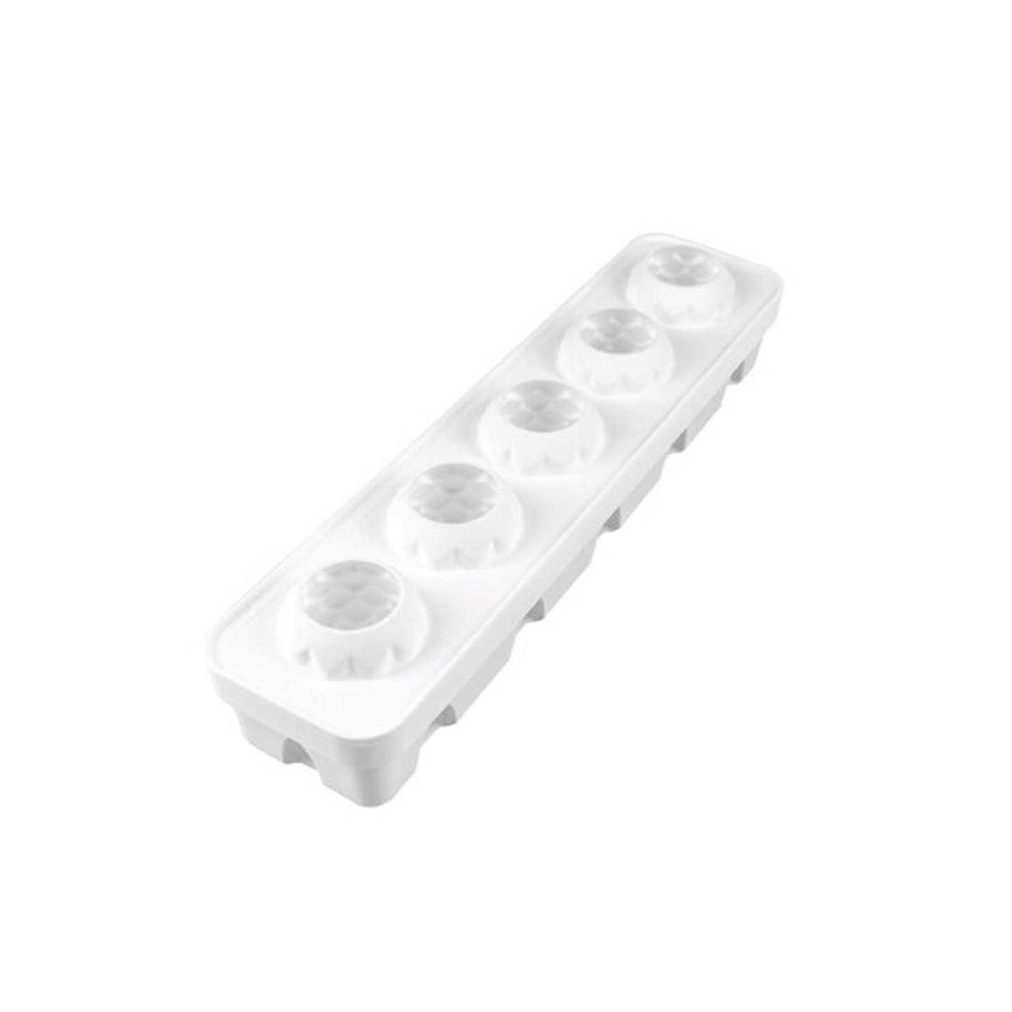 Obsahuje 5 dutin o objemu 110 ml, které jsou ideální pro přípravu mousse dezertů, semifreddo nebo moderních vitrínových monoporcí. Strukturovaný povrch krásně vynikne zejména při použití sametového efektu, barevného kakaového másla nebo čokoládových dekorací.